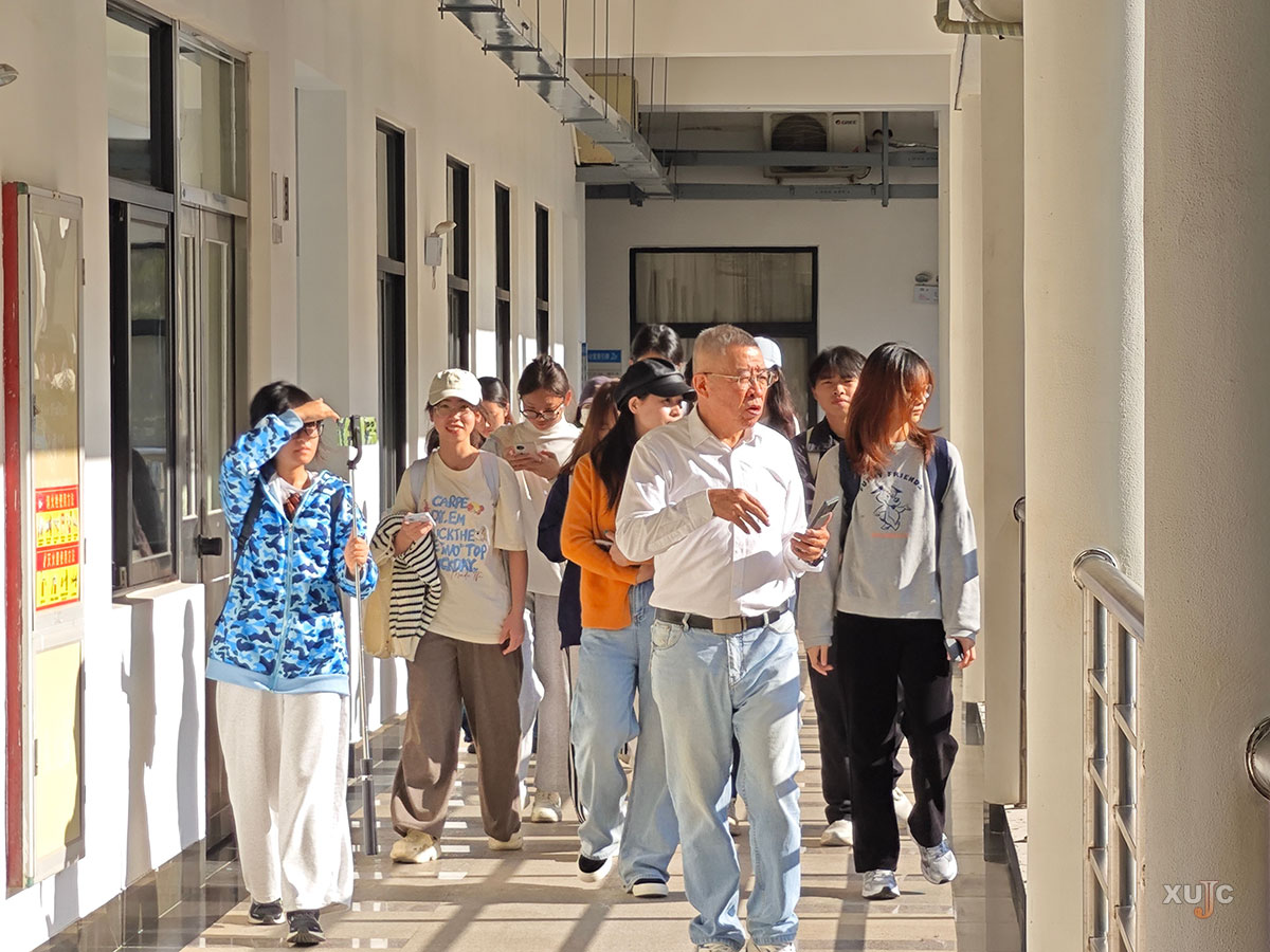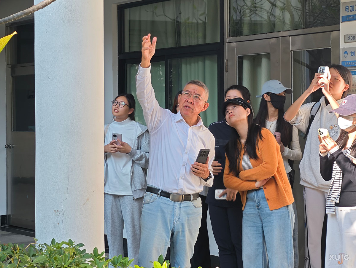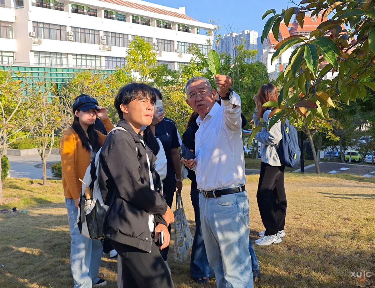 同学们沿着预设路线边走边学、边拍边悟:从花丛中含苞待放的玉兰花苞,到林荫道上交错斑驳的光影;从教学楼转角处线条利落的建筑细节,到草坪上随风摇曳的草木生机……每一处场景都成为鲜活的教学案例。