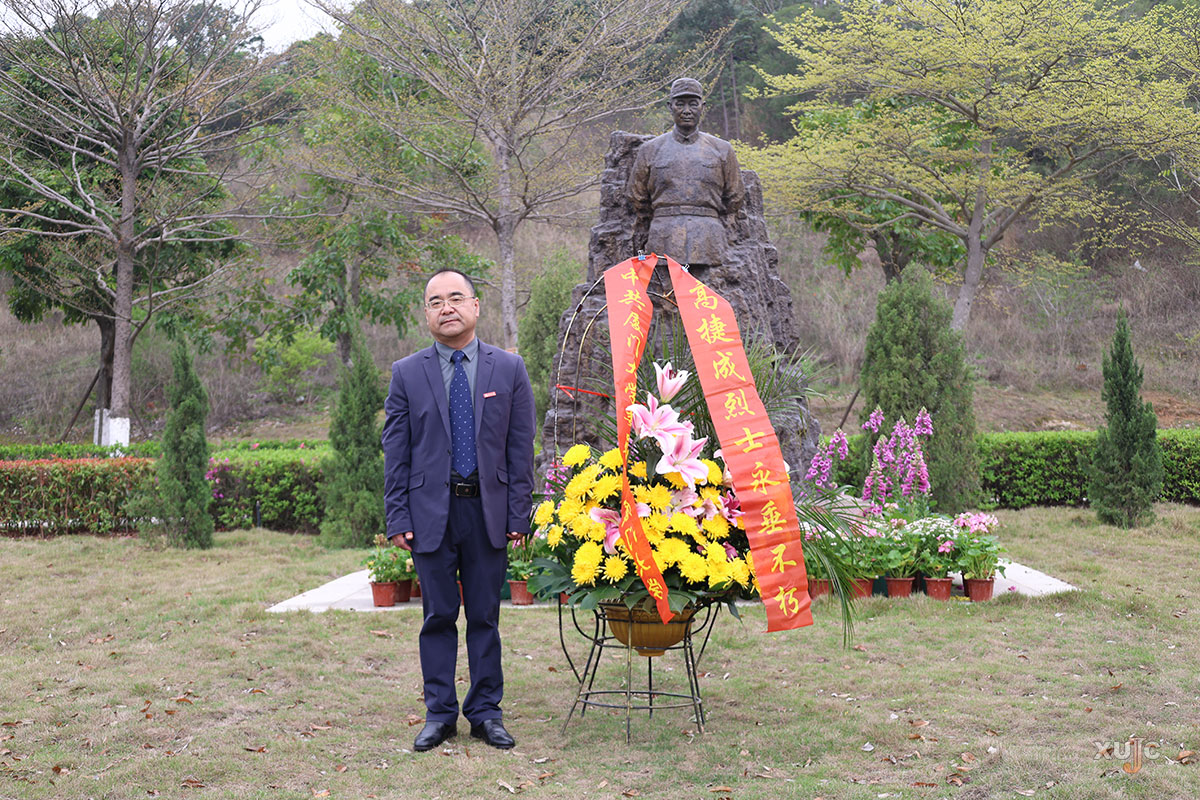 高捷成铜像清明祭扫仪式在桂花山平台举行。