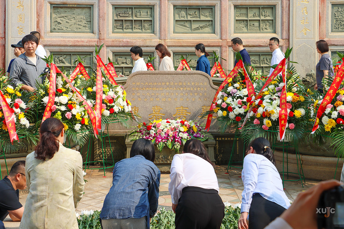 陈嘉庚铜像清明祭扫仪式在嘉庚广场举行。