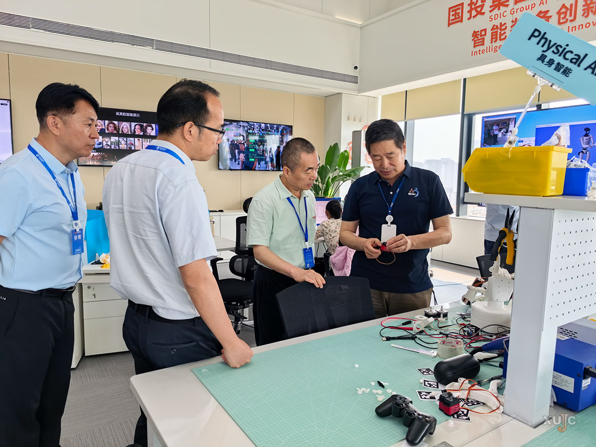 在高滨及企业相关负责人的陪同下,廖明宏一行先后走进美亚柏科企业展厅和具身智能研发区域,通过工作人员的讲解,直观了解了企业的核心业务板块、特色产品成果及行业龙头实力,也近距离观摩了具身智能技术的研发进程与应用演示,深入探讨了技术研发细节与人才需求标准,为后续校企合作及人工智能与计算机学院人才培养方案优化提供了重要参考。