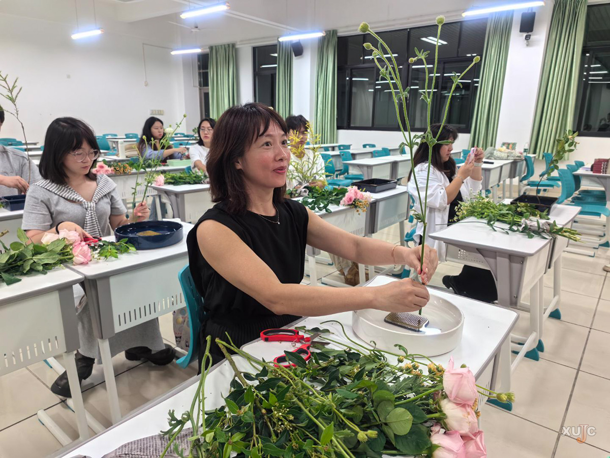11月7日,秋尽冬生之夜,由厦门中日交流之窗和我校日本语言与文化学院联合举办的日本花道教室2025年秋季日本插花首次课程在厦门大学漳州校区主楼群1号楼320教室拉开帷幕。