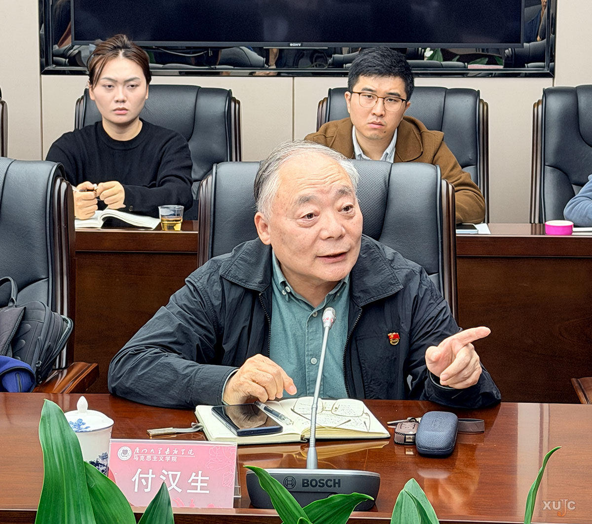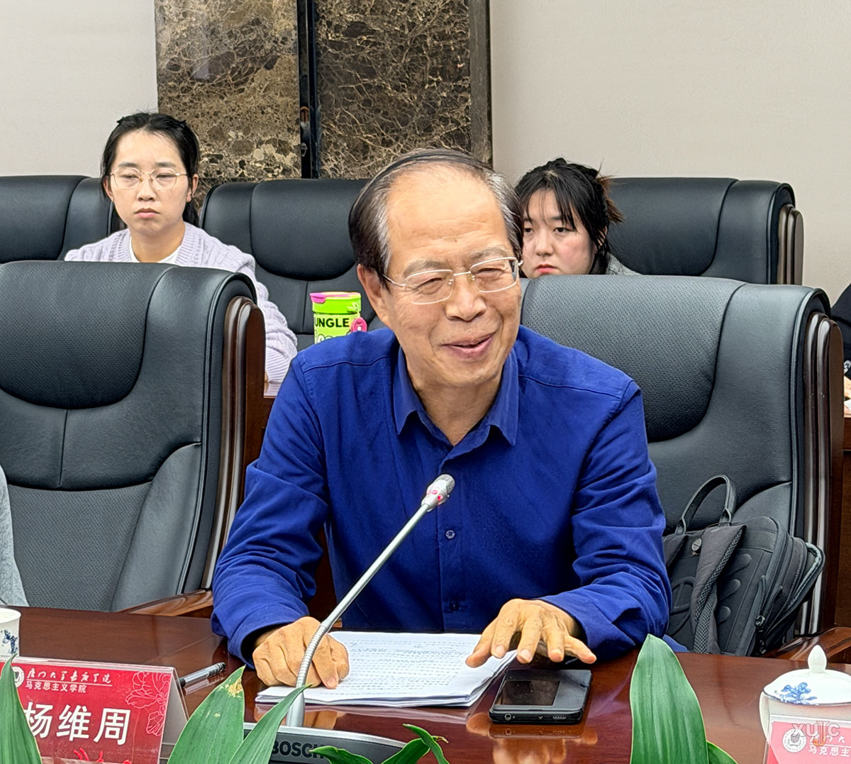 马克思主义学院院长郑斌教授主持会议。他首先带领全院教师认真学习国家教育部及省委教育工作领导小组关于党的二十届四中全会精神融入思政课教学的相关文件精神,传达了校党委的部署和要求,进一步明确了党的二十届四中全会精神融入思政课的教学创新活动和具体安排。