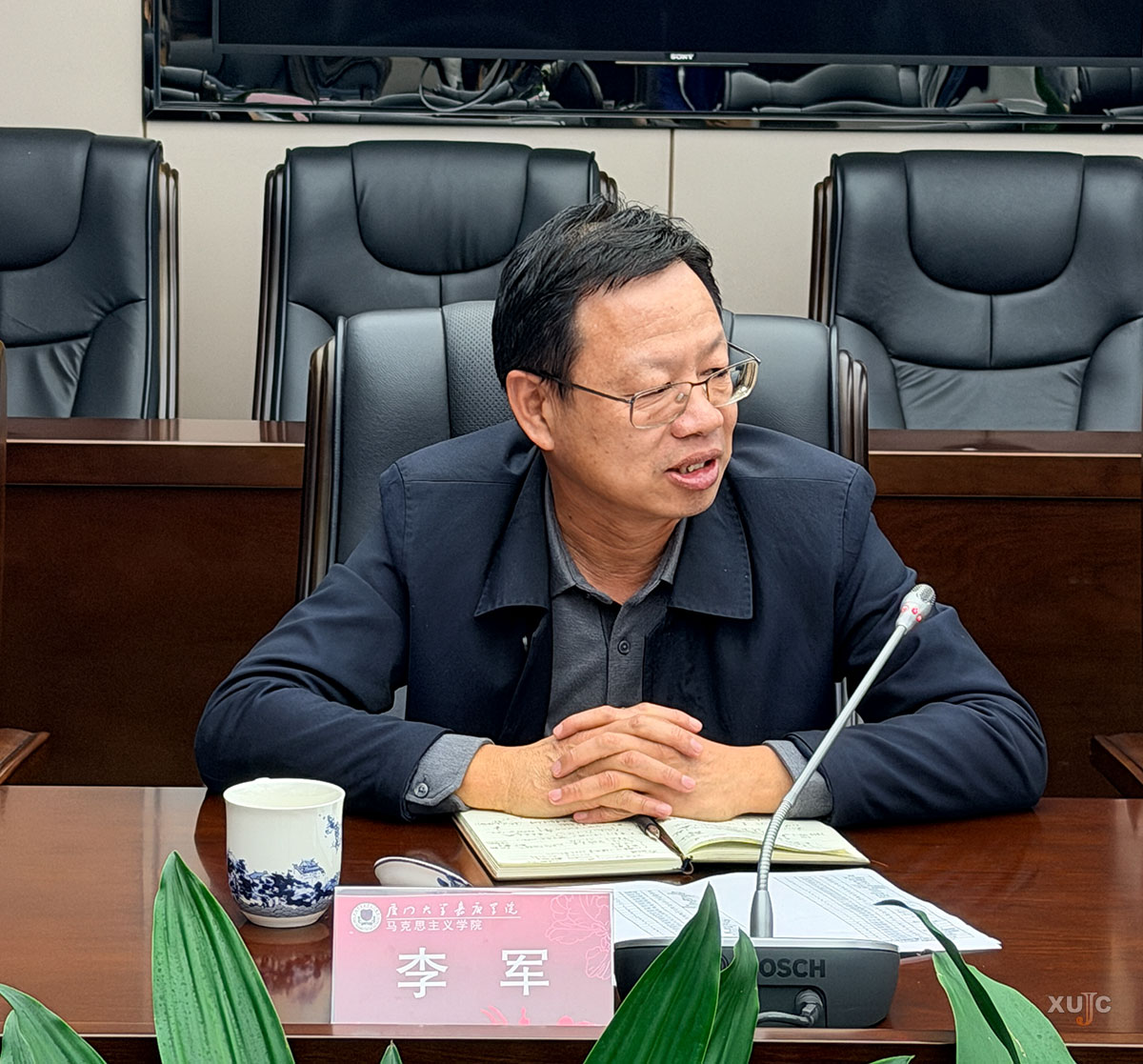 李军一直心系“大思政课”建设,多次深入思政课堂授课、听课,与老师探讨切磋,广泛征求学生们的建议。他充分肯定马克思主义学院党的二十届四中全会精神融入思政课教学取得阶段性成果,并强调思政课作为落实立德树人根本任务的关键课程,思政课教师必须扛起政治责任、彰显育人担当。他指出四点要求:一是要先学一步、深学一层,以扎实的功底将党的二十届四中全会精神融入教学全过程,讲清道理、讲透学理、讲活哲理,不断增强学生“四个自信”的理论认同和价值认同;二是要精准把握关键内容和核心要义,守正创新,推动理论学习与教学实践深度融合,打造有感染力的思政课程;三是要以学生为中心,走到学生群体当中去,了解他们的需求和期盼,讲出思政课的感情和新意来,提升学生抬头率、点头率;四是要与专业课教师多交流,结合专业知识内容,将有价值的党的二十届四中全会精神融入思政课的教学案例和课程思政教学成果全校共享,盘活“大思政课”教学实践资源,以高质量思政教学为我校培养高素质的社会人才提供支撑。