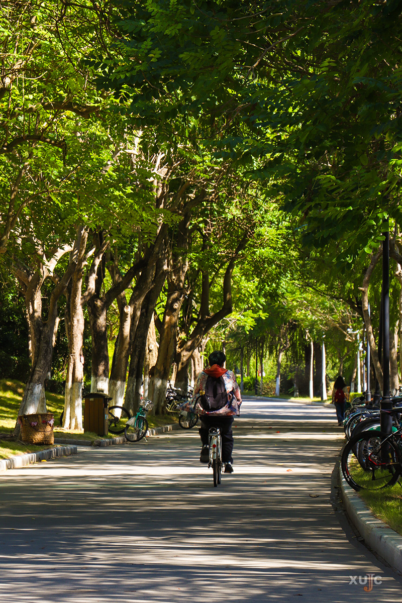 那个在林荫道上穿梭的身影