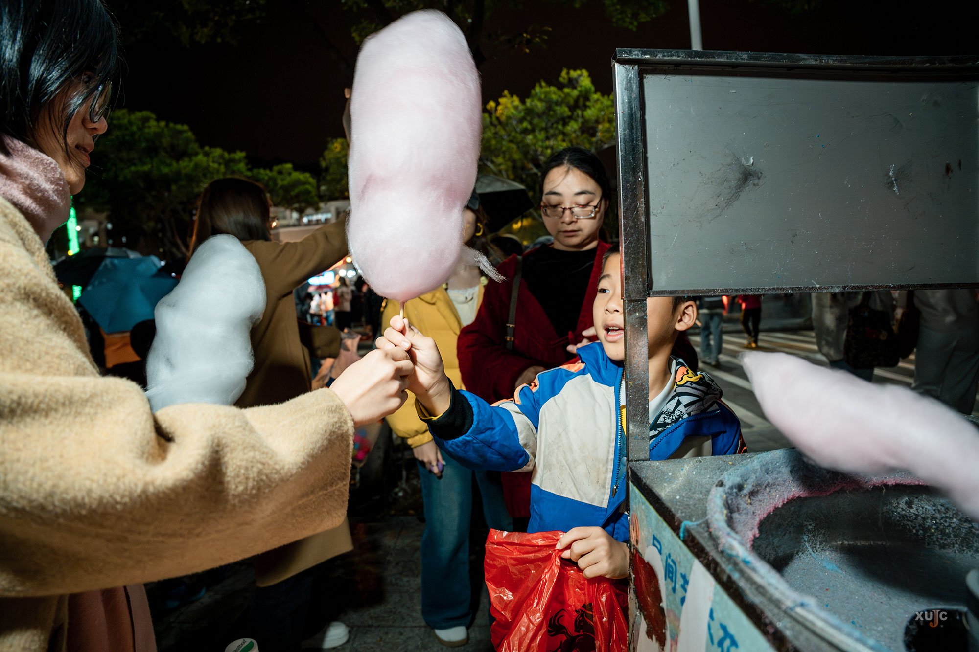 美食互动区飘来阵阵香甜。汤圆、胡辣汤、面线糊、棉花糖……师生们用2—3个“汤圆”即可兑换一份暖心美味。
