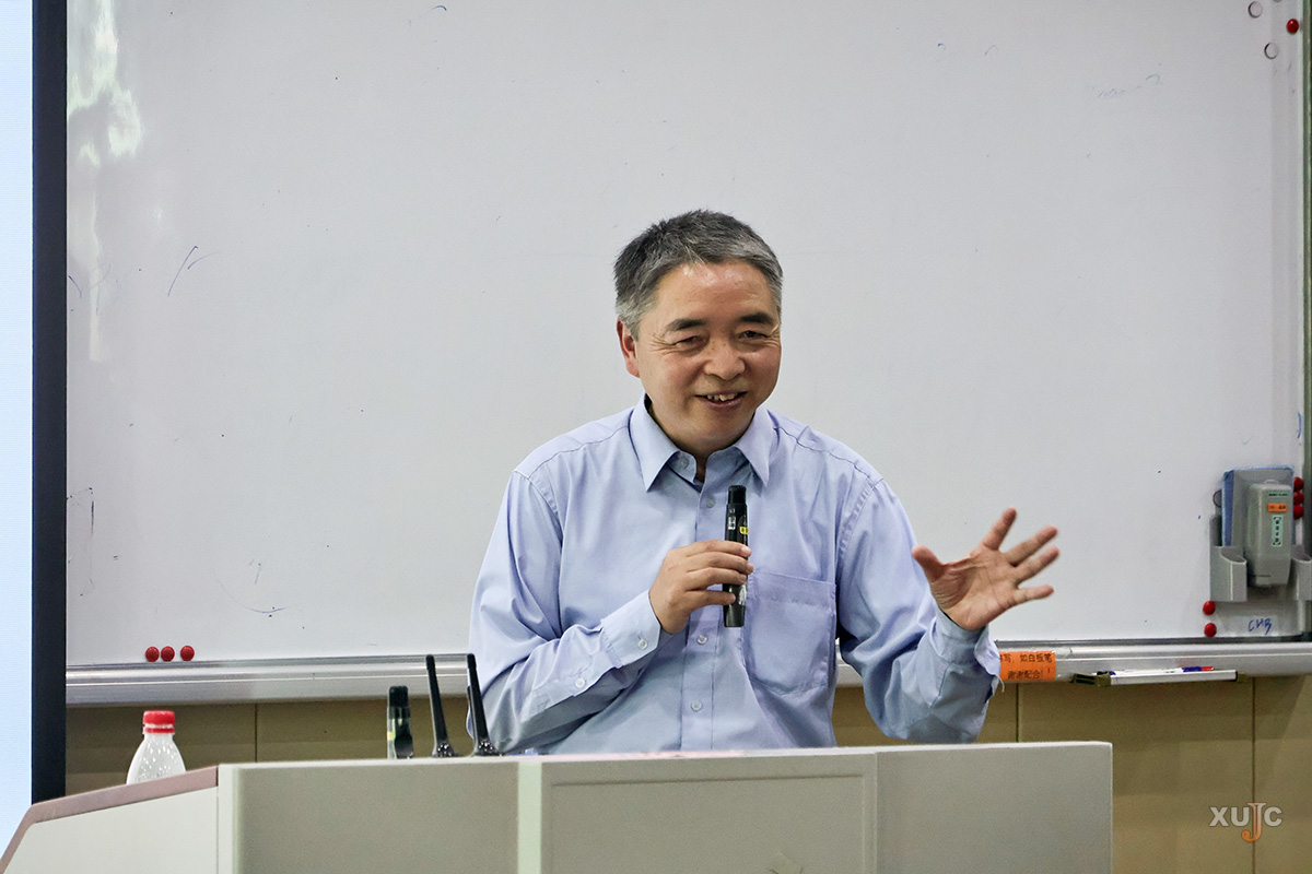讲座开篇,彭永新介绍了该生涯规划课程的发展历程:自2001年厦大开设职业规划课起,课程不断发展为如今的大学生涯规划与设计课。彭永新结合2025级新生面对的当代就业多元环境,指出“毕业后全职工作并非唯一选择”,并强调规划需从大一开始,而非等到大四才“临时抱佛脚”。