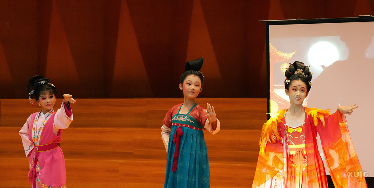 此外,由陈伟顺指导的“蓝海豚”社团现场复刻盛唐歌舞。小演员们身着唐装,在表演中融入南音与河洛话唱词,从唱腔到身段,完美诠释大唐魅力。