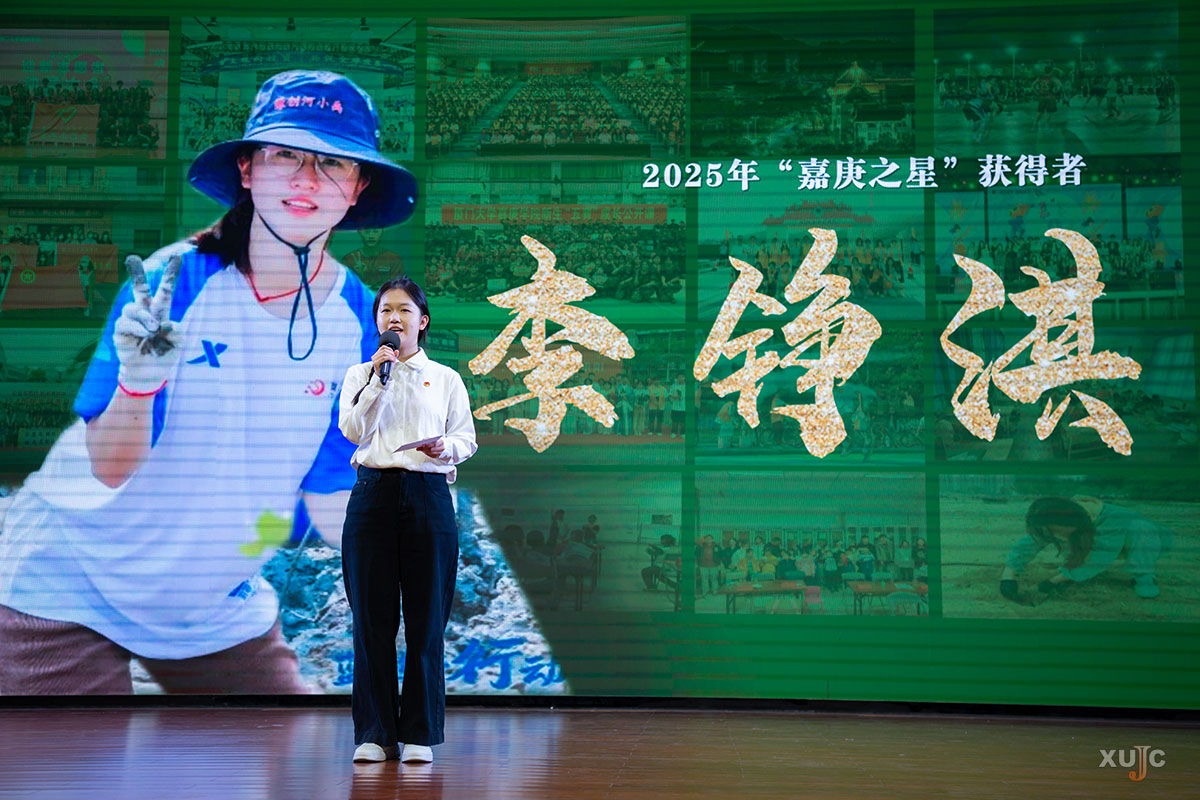 7位2025年度“嘉庚之星”获得者上台分享了他们的七彩故事。一身戎装守家国,曾两度入伍的人文与传播学院学子冷佳慧以“滚烫的赤光”定义青春;深耕专业的信息科学与技术学院学子陈才宇以“炽热的橙光”承载初心,践行科技报国;文脉传承勇担当,将青春化为“温暖的黄光”,日本语言与文化学院郑训焓以学助农守护中华底蕴;环境科学与工程学院李铮淇将青春喻为“生机的绿光”,她躬身志愿,点亮生态希望;国际商务学院学子冯天瑞以“清醒的青色光”校准方向,在双创赛事中斩获佳绩;国际商务学院学子柴若瑶以“沉静的蓝光”诠释专注,筑牢学业根基、带领团队捧回全国奖项;机电工程与自动化学院学子缪政宸称青春是“厚积薄发的紫光”,他潜心钻研,锲而不舍实现逆袭……