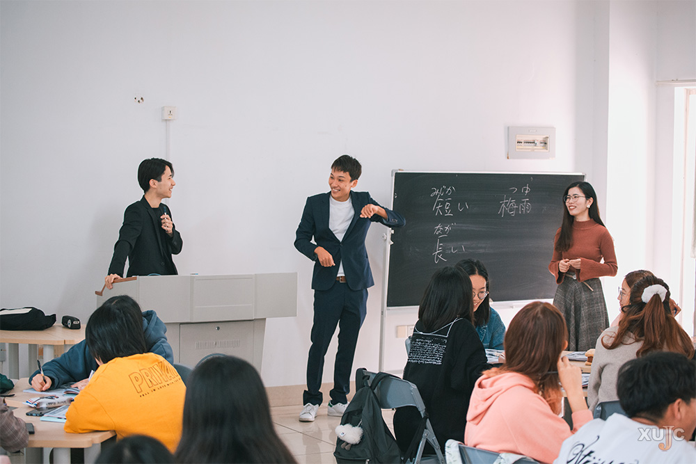 在《日语语法与阅读(基础)》《第二外语(日语)》《大学日语》《中、高级日语》《观光日语》《日语听说》等课程中,5名日本学子担任助教,并进行实习授课。在课堂上,他们善于用周围事物举例讲解,多采用鼓励式教育,还会走到学子的身边与学子互动。对于这些“日语老师”,我校学子表示很欢迎。2019级日本语言与文化学院学子范冰冰表示:“照顾到初学者的日语水平不高,他们会很贴心地放慢语速。课后,我们的交流也很轻松愉快。”