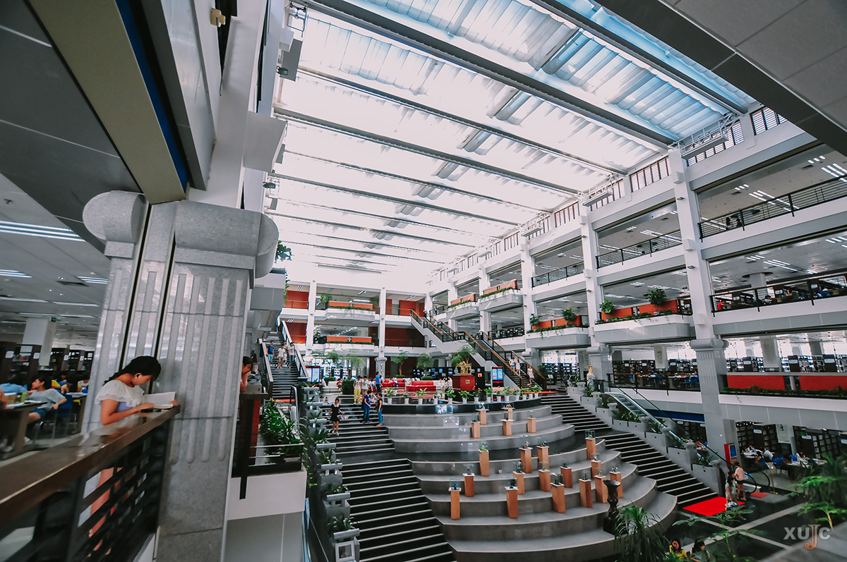 南游北往,绿骑闲观。若恰逢堂时,则人潮汹涌,南来北去,络绎不绝,如百舸争流,似鸢飞戾天,一派生气盎然。信步邻楼,闻声入耳,或先生讲学,或学生谈笑。师解所惑,其援疑而质理;同学畅聊,论古今之轶事。