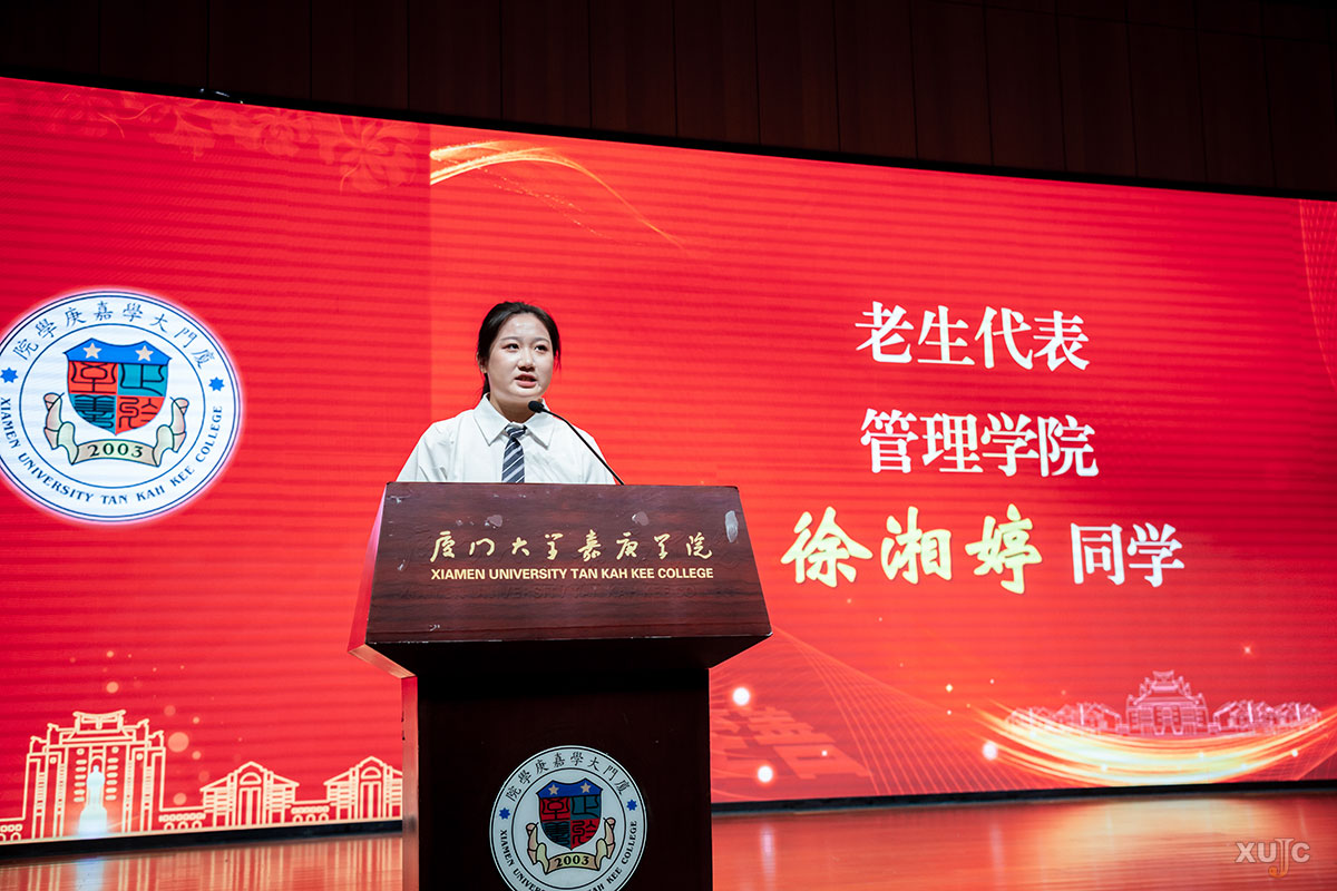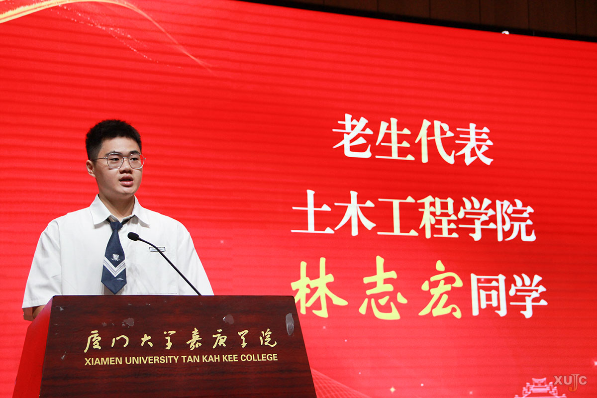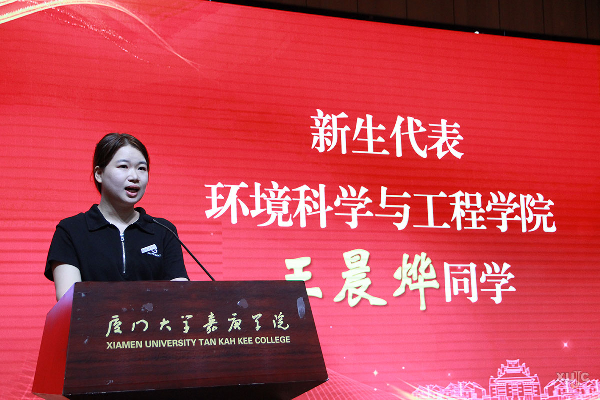 “拿到录取通知书的那刻,内心的喜悦无法用言语形容,充满对‘嘉园’生活的无限期待。”理工科场新生代表、环境科学与工程学院学子王晨烨的发言中满是圆梦的喜悦,“家与‘嘉’的距离不过2公里,但这条路我却走了15年,才和大家真正成为一‘嘉’人。这个夏天,弥补了那个夏天的遗憾。”对于这份来之不易的“嘉”情缘,王晨烨倍感珍惜。她表示,在未来两年的学习生活里,自己会勤奋学习,严于律己,脚踏实地,坚定理想信念,牢记初心使命,朝着自己的目标阔步迈进。她也祝愿大家,在嘉庚精神的指引下,用这两年的努力,为自己拼一个无悔的未来,搏一个圆满的人生!