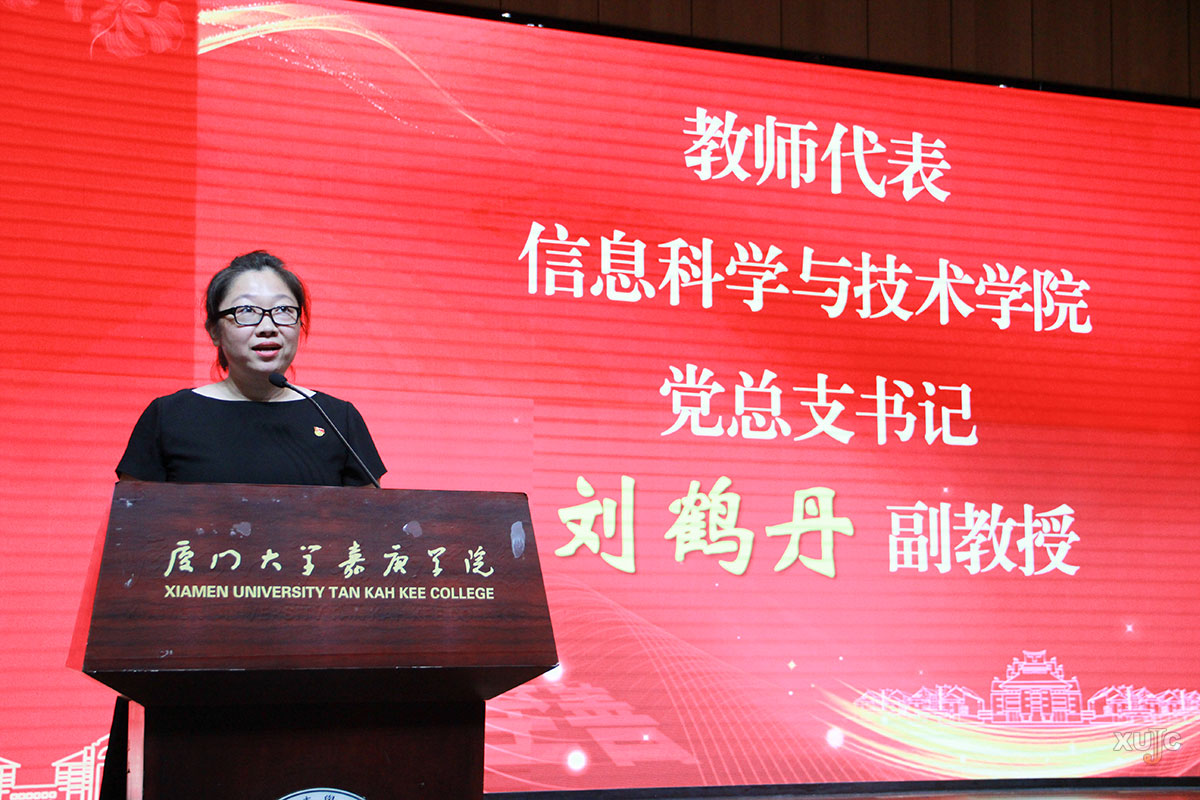 “作为你们的老师,我们责任重大,同时也满怀期待。”理工科场教师代表、信息科学与技术学院党总支书记刘鹤丹的发言饱含对新生的期待。她希望同学们能够珍惜大学时光,努力学习专业知识,传承嘉庚精神,多参加社会实践、志愿服务等活动,注重培养自己的综合素质和能力。她也表示:“作为教师,我们将秉承‘以学生为中心’的核心办学理念,用心传授知识,成为你们学习路上的引路人,陪伴你们一起成长。”为助力大家尽快适应新的学习生活,她给出了三个“锦囊”:一是充分自信,相信自己的能力和潜力可以战胜各种困难和挑战;二是用积极主动的态度去丰富自己的知识储备;三是培养持续学习和进取的激情,在保持身心健康的前提下,全面提升自己的综合素养。