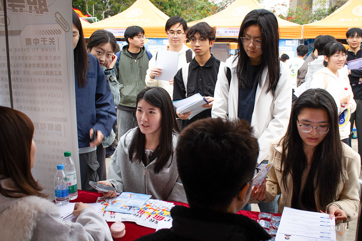 穿梭于展位间的嘉庚学子,眼神里满是期待与热忱。