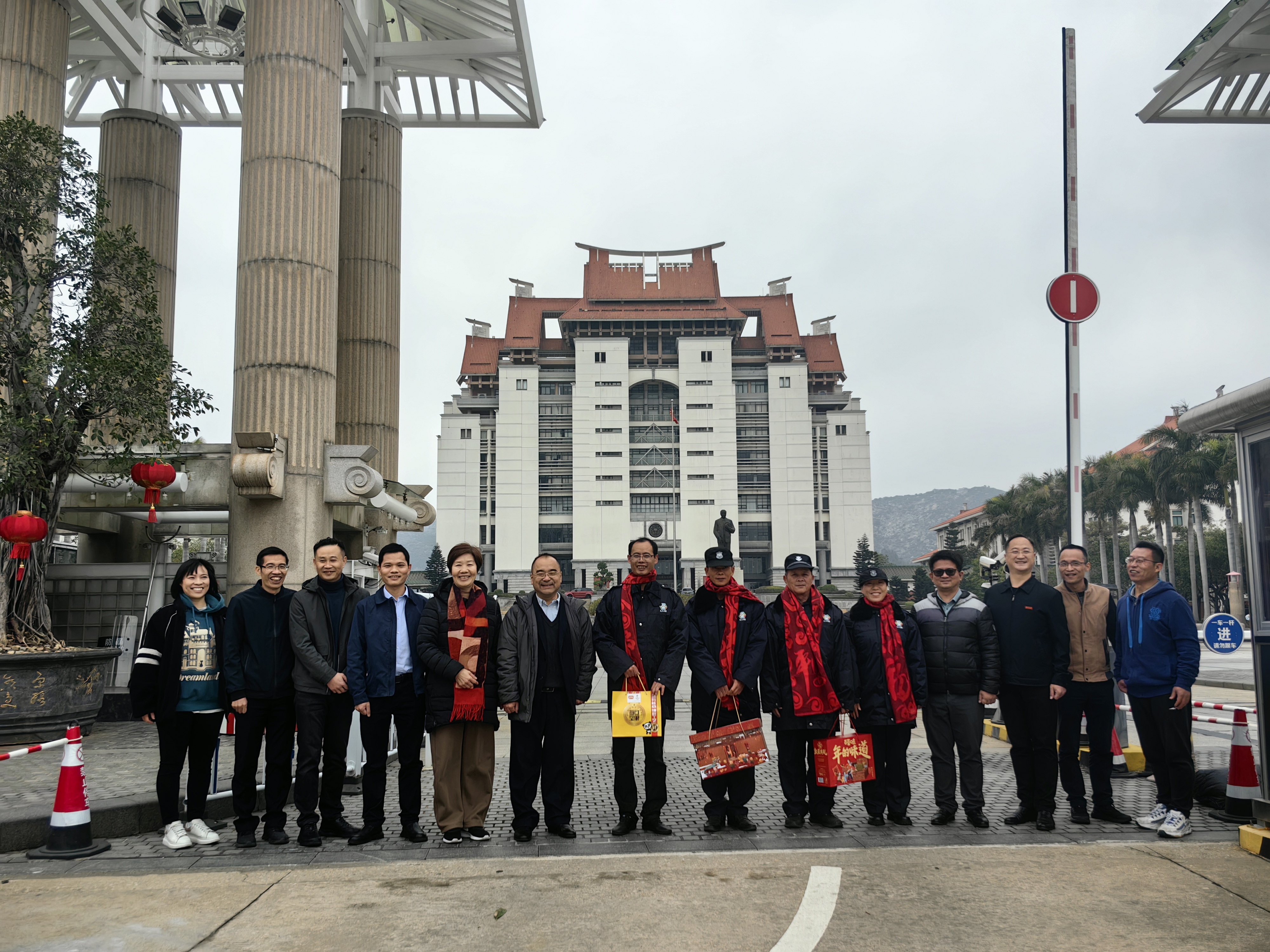 校党委常务副书记黎永强、党委副书记王洁松一行先后走访了南强物业漳州校区主楼服务处、学校总值班室、保卫部、学术交流中心、校区医务室、中区食堂、后勤集团服务大厅、中门门岗,代表学校感谢大家坚守岗位、认真履责,并送上慰问品和新年祝福。