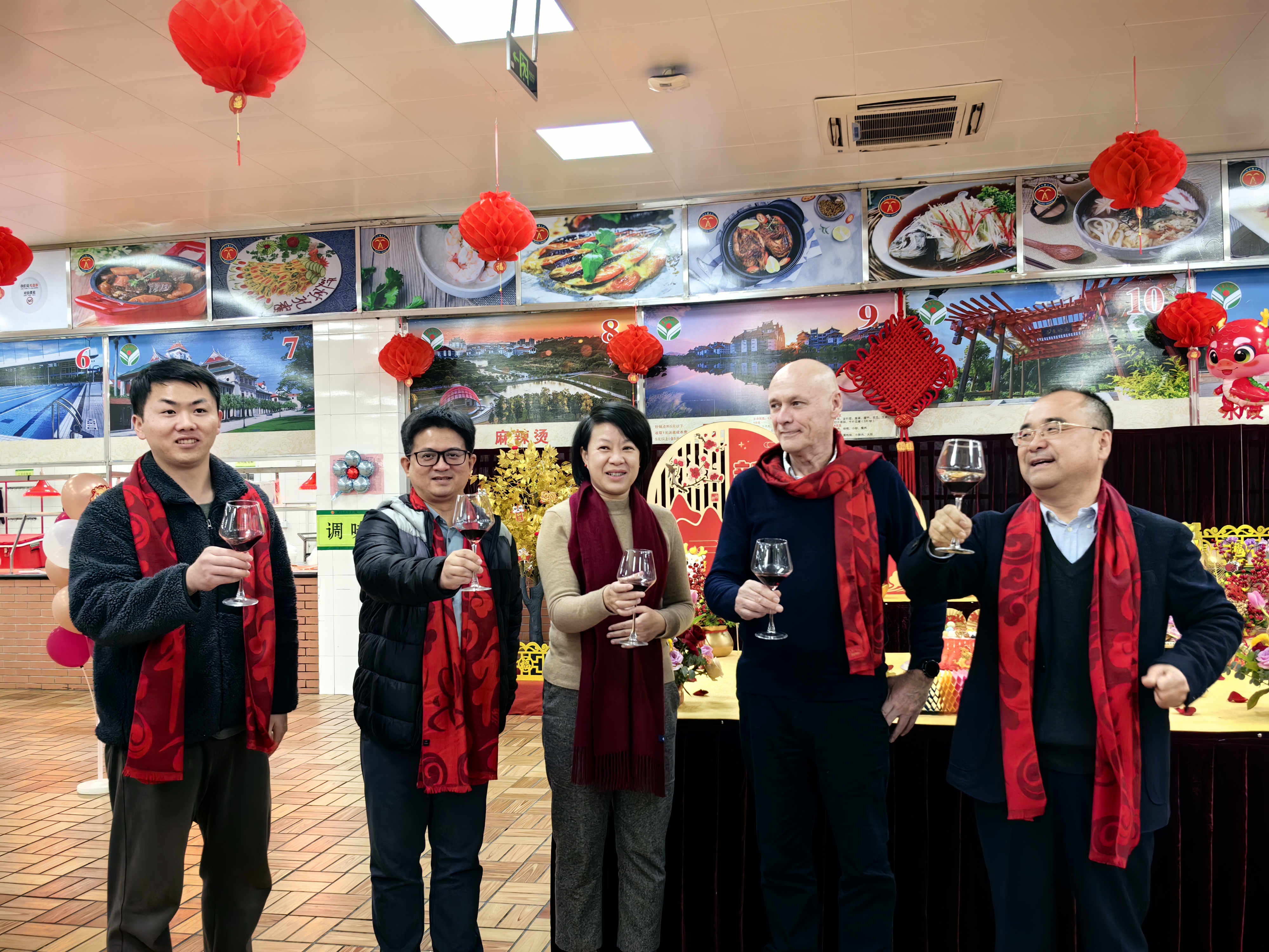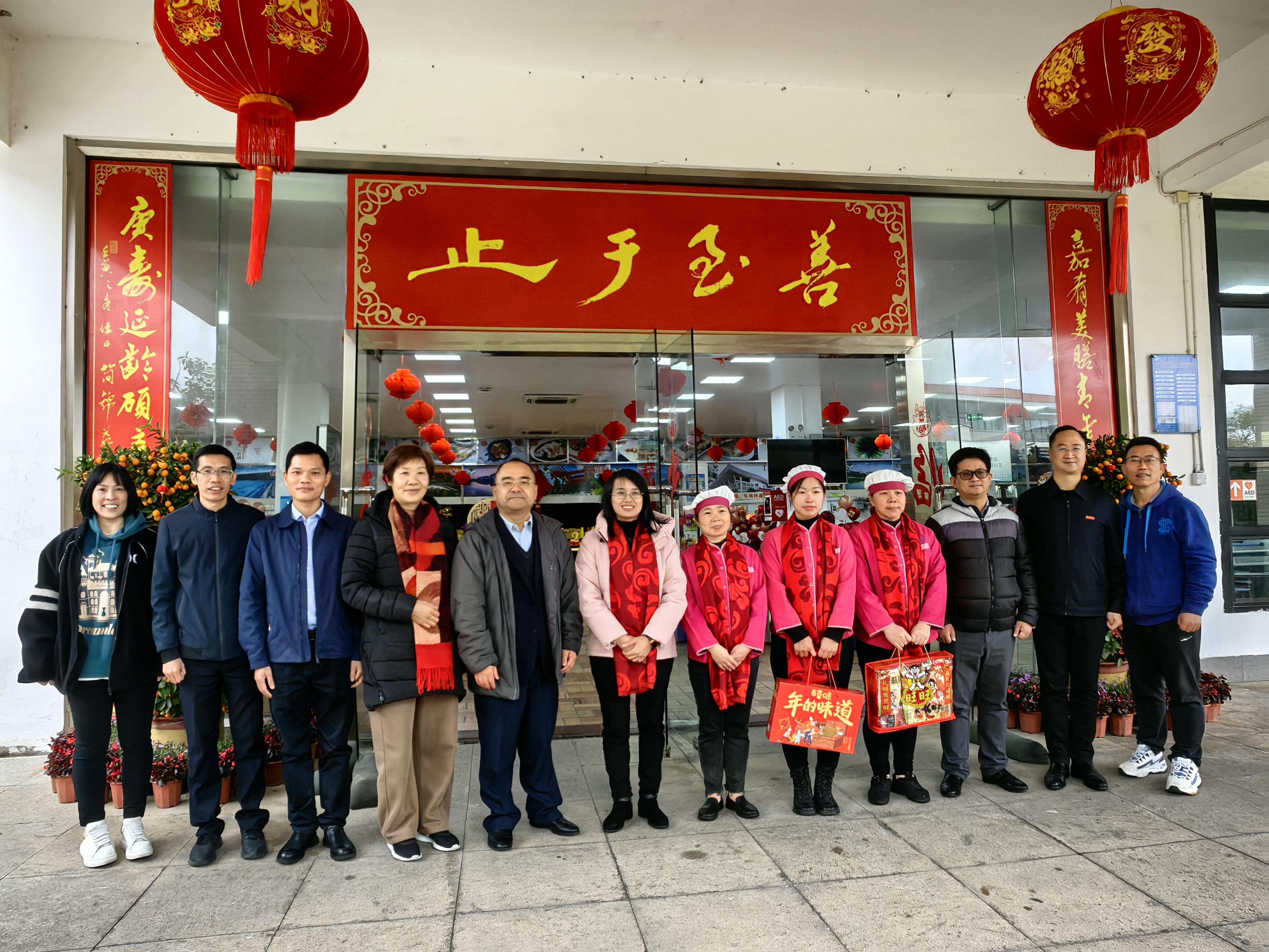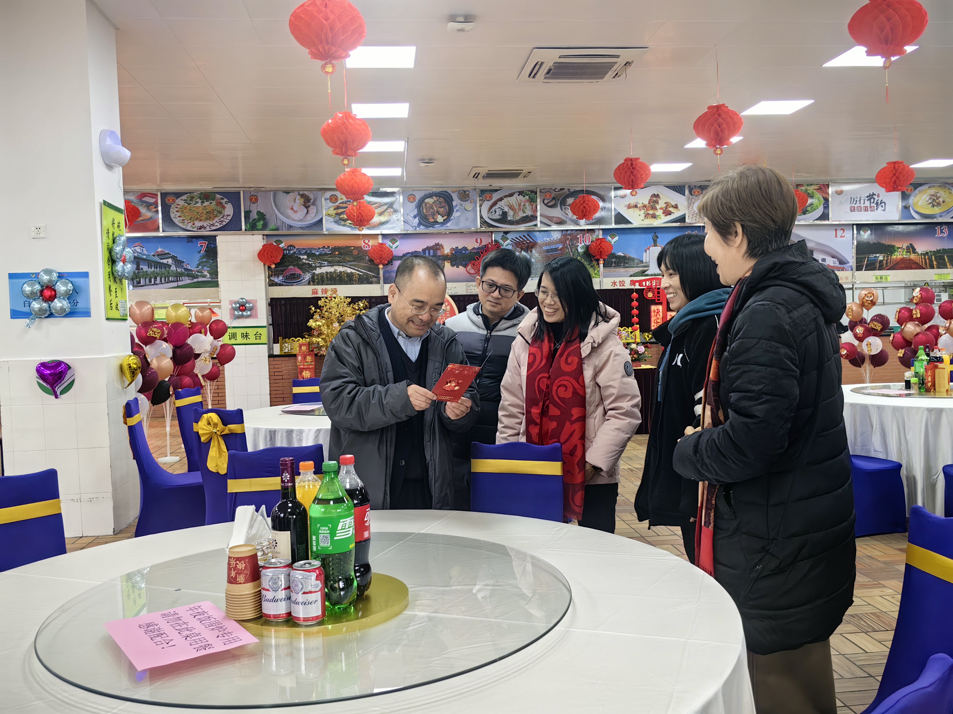 下午4时,中区食堂装扮一新、喜气洋洋,校党委常务副书记黎永强、党委副书记王洁松,院长助理、学工部部长、团委书记姚祖婵与留校师生员工欢喜大围炉。