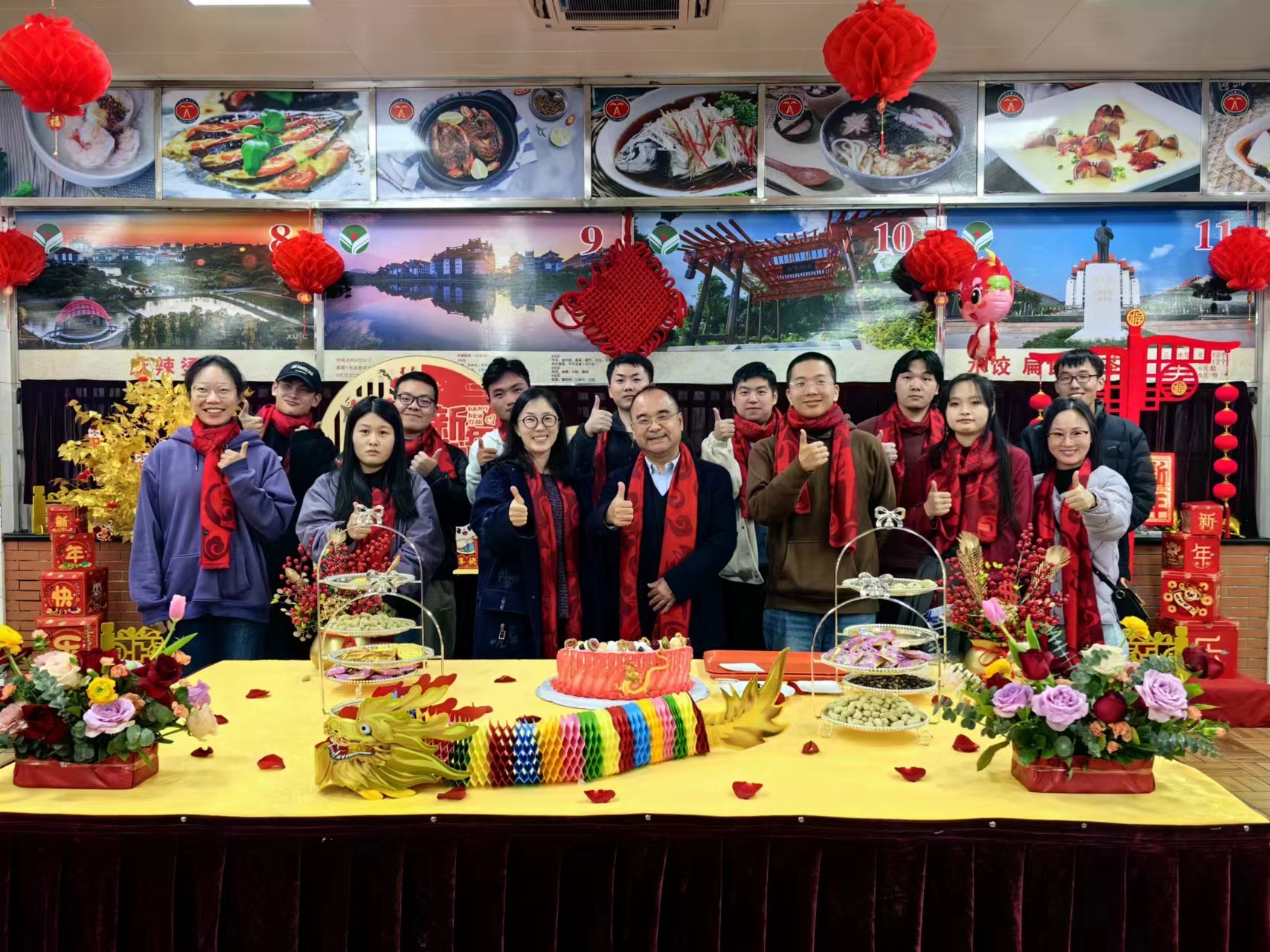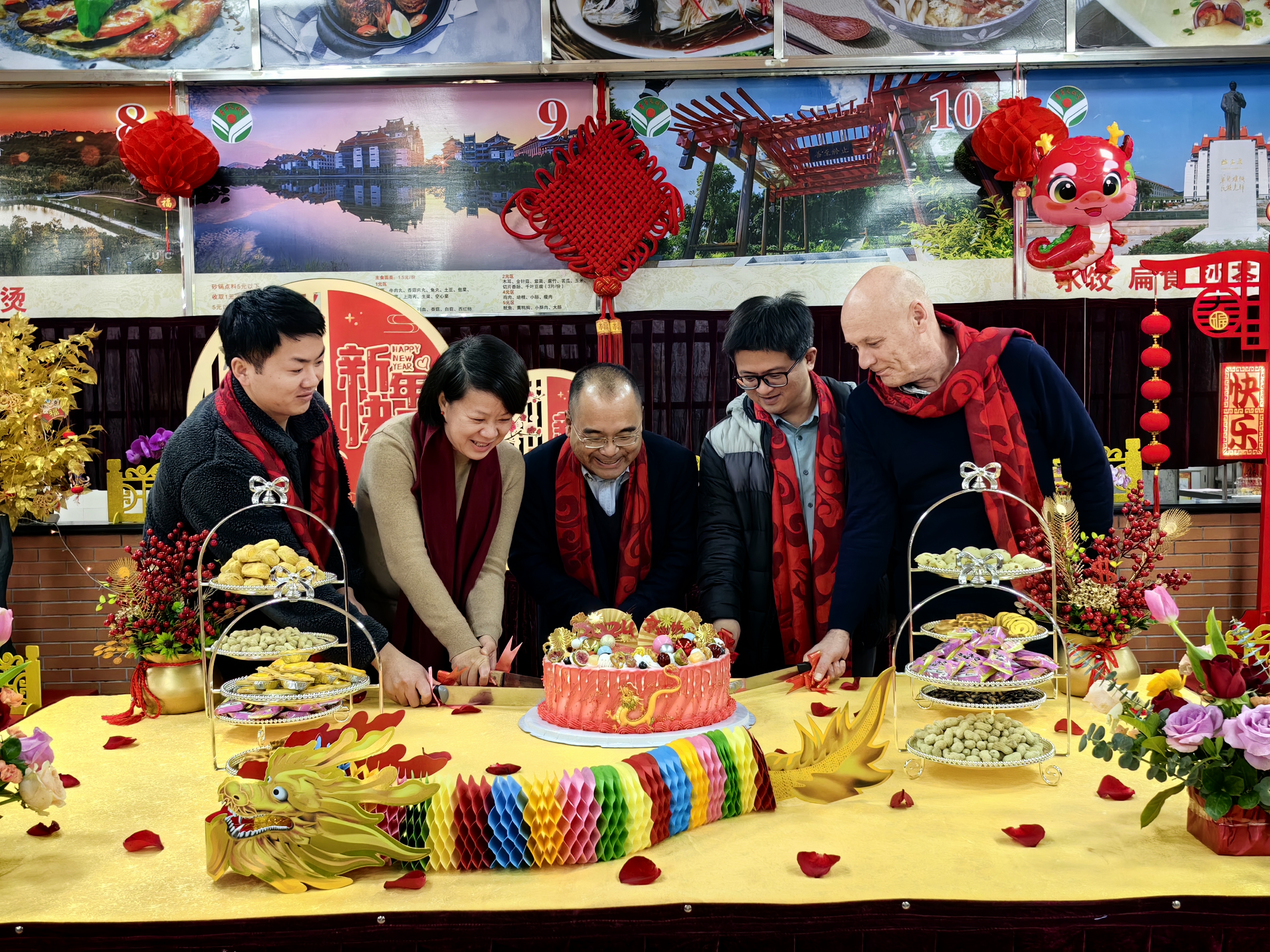 参加活动的领导和师生代表共同切开新年蛋糕。在喜庆的气氛中,大家纷纷举杯,互道祝愿,一起迎接农历新年的到来。