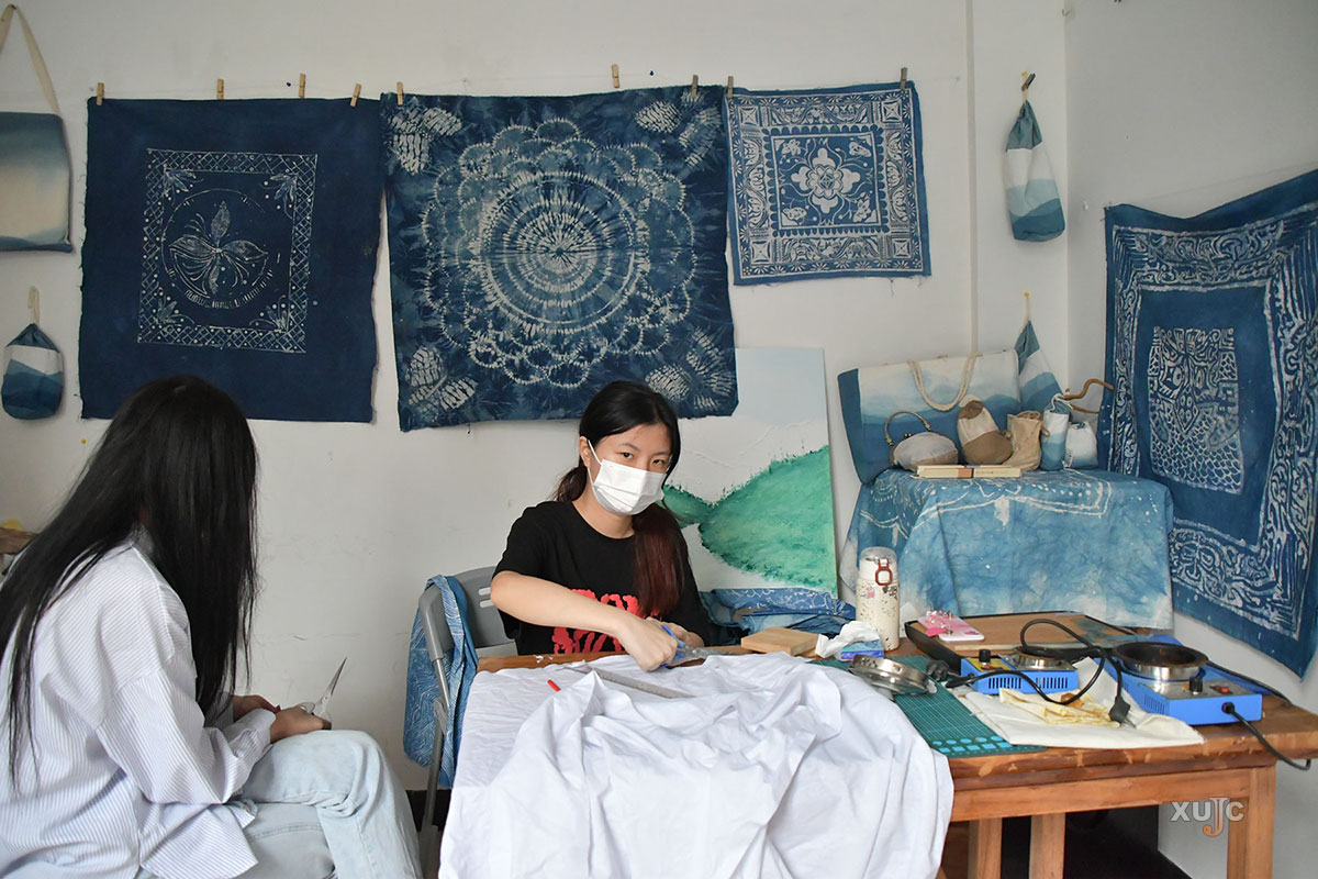 《扎染创意设计》结合理论与实践教学,探寻扎染艺术的特质与真谛。(摄影:沈志善)