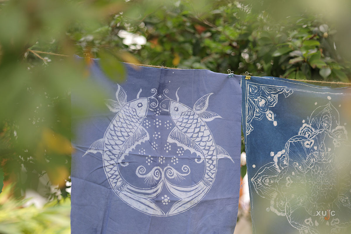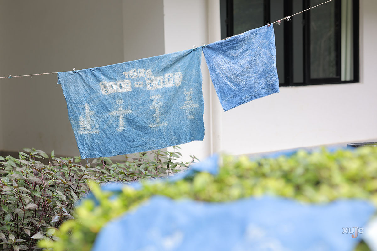 晾干后,一片片无比美妙的扎染布,展现出同学们对美的独特感受和追求,每一幅作品都是心灵的映照。(摄影:安予心)