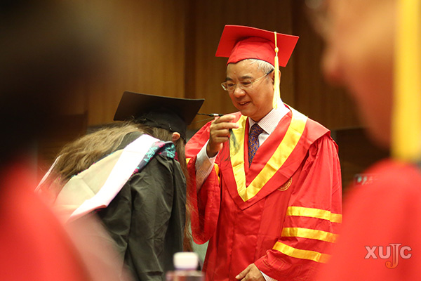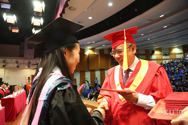 财务管理专业朱婧雯作为毕业生代表发言时有感而发:“我曾问学姐,毕业典礼需要多长时间?学姐回答我说,那要取决于你们有多少人想要抱院长,抱的人越多院长站的越久。于是,我抑制住了想要拥抱院长的冲动,院长太辛苦了。但我不遗憾,因为院长的手,真的好温暖。”
