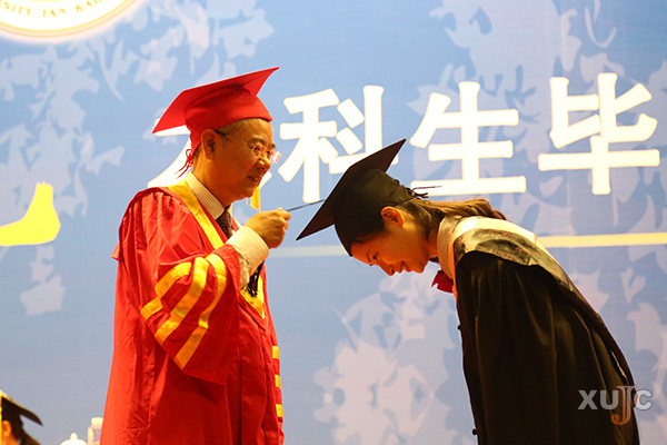 毕业典礼进行到第七场,王院长2016年度“体测”进入最后的三分之一。10年来,为每一位毕业生亲手援正流苏是王院长的坚持。能在毕业典礼上与“芳芳男神”亲密接触,也成了嘉庚学子毕业时最期盼的一幕。