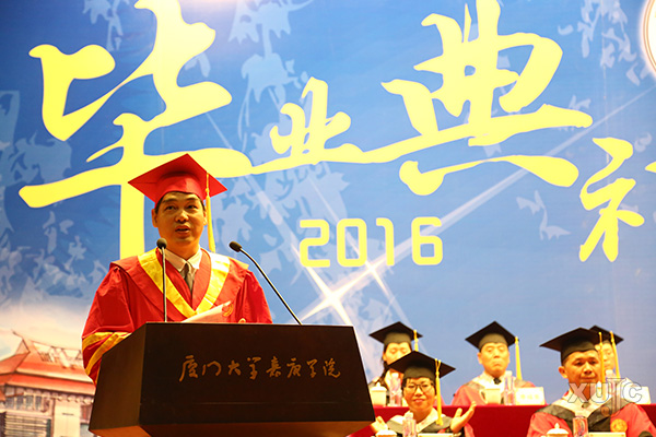 他是嘉庚学院的院长,他满眼慈祥,看着台下身着学士服的学子终于成才;她是一名普通的家长,她手捧鲜花,满脸笑意,准备给孩子一个大大的惊喜;她是一名辅导员,为每一个四年前亲手迎进来的学生最后一次整理衣帽;他们是今天的毕业生,满怀激动紧张的心情走上台,鞠躬,屏气感受院长的手将自己的流苏从右向左援正。