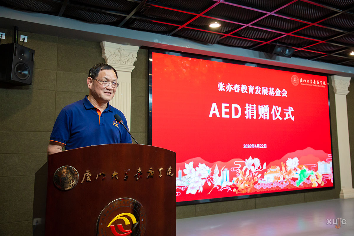 在致辞中,洪永强代表学校对基金会的善举表示衷心的感谢。他回顾了我校与基金会的深厚情谊,指出早在学校二十周年校庆之际,张亦春教育发展基金会便捐赠了“元宇宙公益图书馆”。此次捐赠AED,是基金会心系教育、情牵师生的又一次体现。他指出,心脏骤停等突发事件往往在瞬间发生,而黄金救援时间仅有短短几分钟,AED是“救命神器”,在校园这类人员密集场所配备具有重要意义。学校将妥善管理维护这批设备,确保其随时可用,并将以此为契机,加强对师生的急救知识培训与宣传,营造“人人学急救,急救为人人”的良好校园氛围,让这份爱心切实转化为守护生命安全的长效力量。