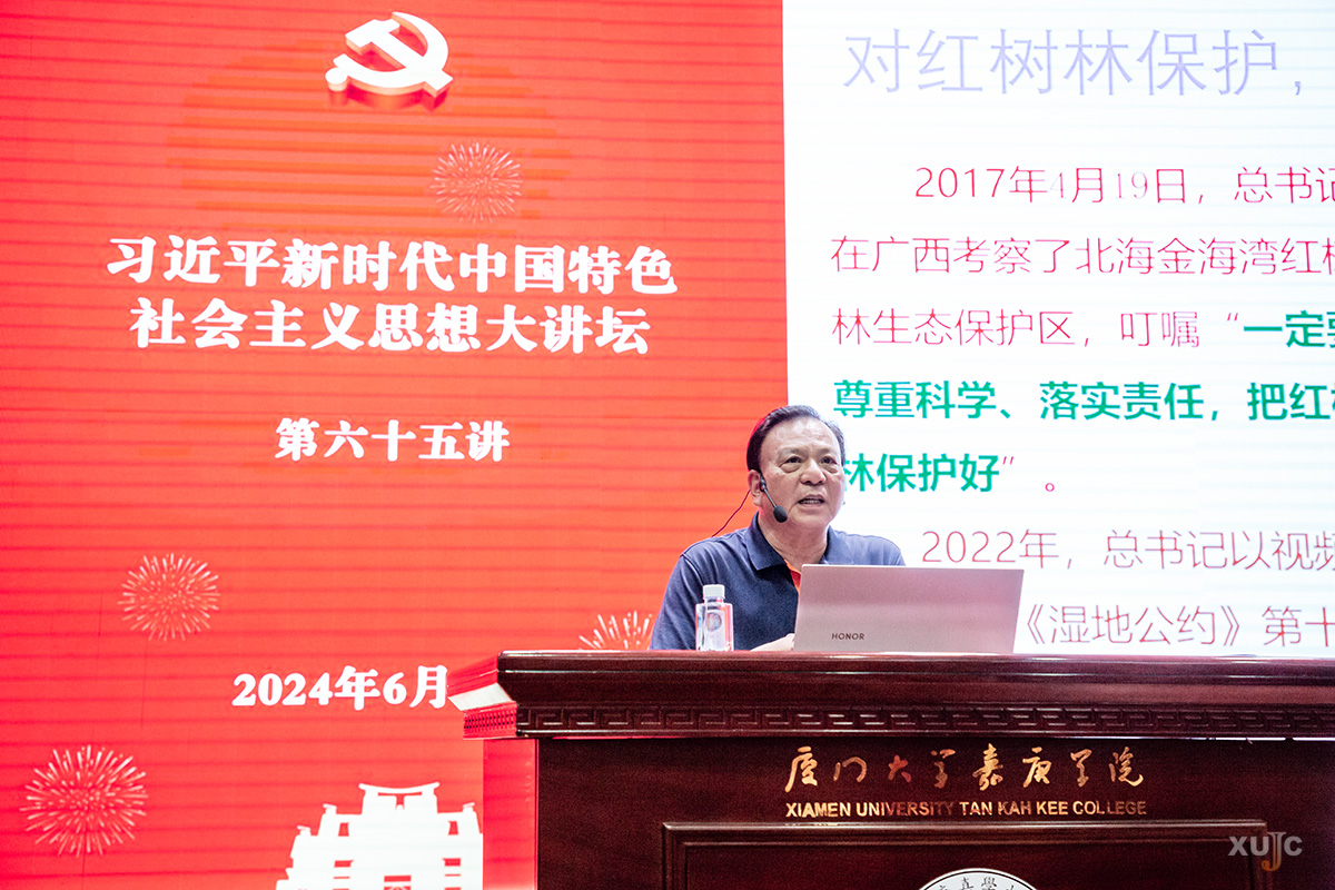 卢昌义为嘉庚学院学子作红树林主题演讲 图片来源:厦门大学