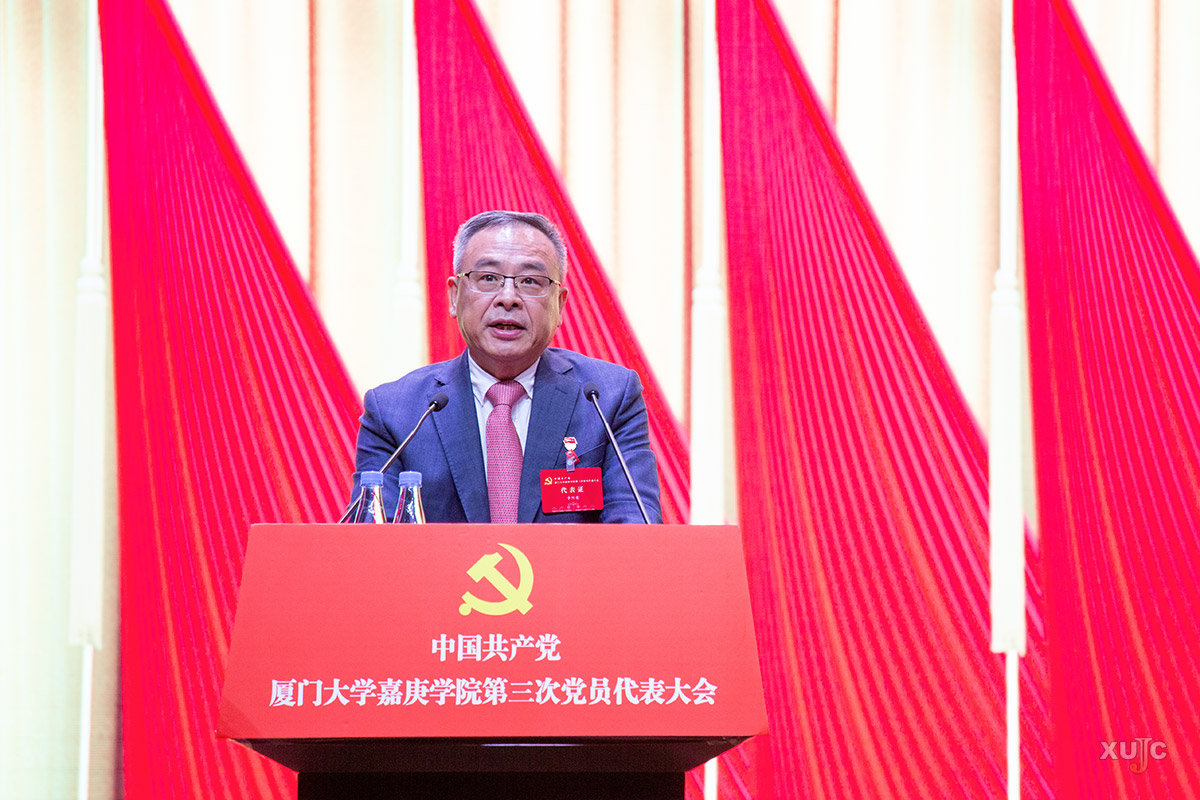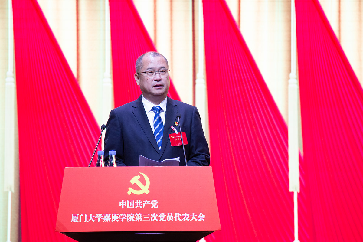 3月21日上午,中国共产党厦门大学嘉庚学院第三次党员代表大会开幕式暨第一次全体会议在主楼群3号楼大报告厅举行。