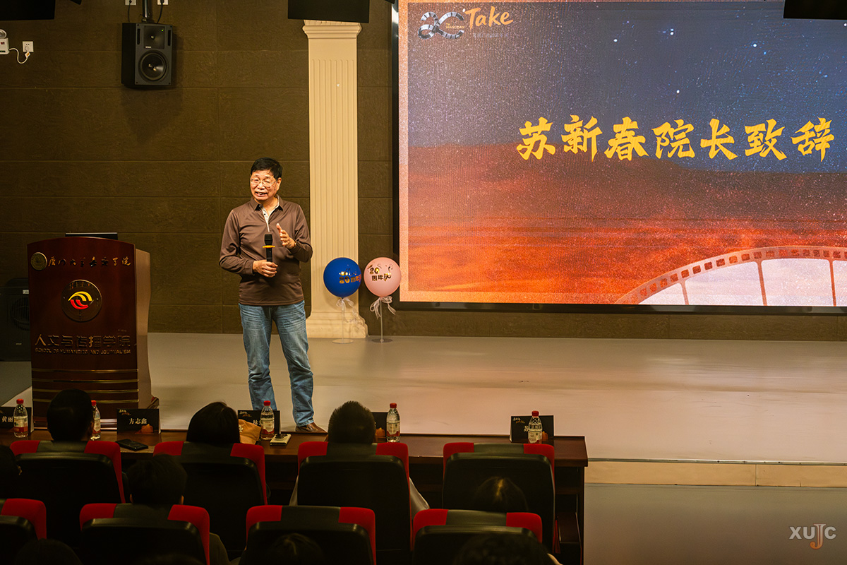 人文与传播学院院长苏新春在庆典上深情回顾广播电视学专业的育人征程。他表示,广播电视学专业已为社会输送逾千名优秀人才,依托省级示范实验室与丰硕的教学成果,该专业正在高质量发展道路上阔步前行。他寄语学子继往开来、再创辉煌。