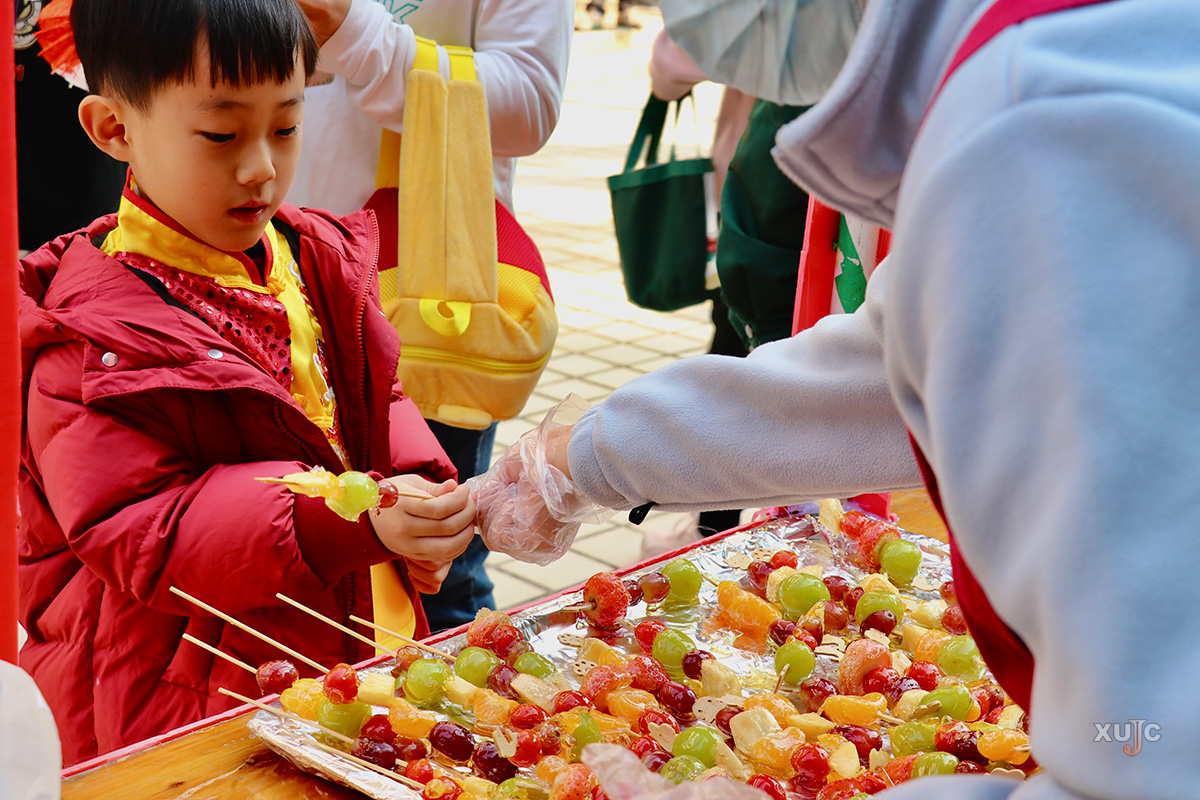 最让人挪不开脚的要数美食坊的特色美食——立春的“春卷”、清明的“青团”、夏至“山药甜筒”、冬至“沙茶小火锅”、寒露“红薯小圆子糖水”以及冰糖葫芦、糖画、棉花糖、雪球山楂……一口美食送入口中,蔓延开的是大小“嘉”人满满的幸福感!
