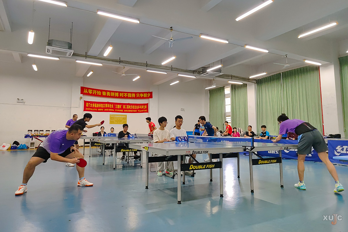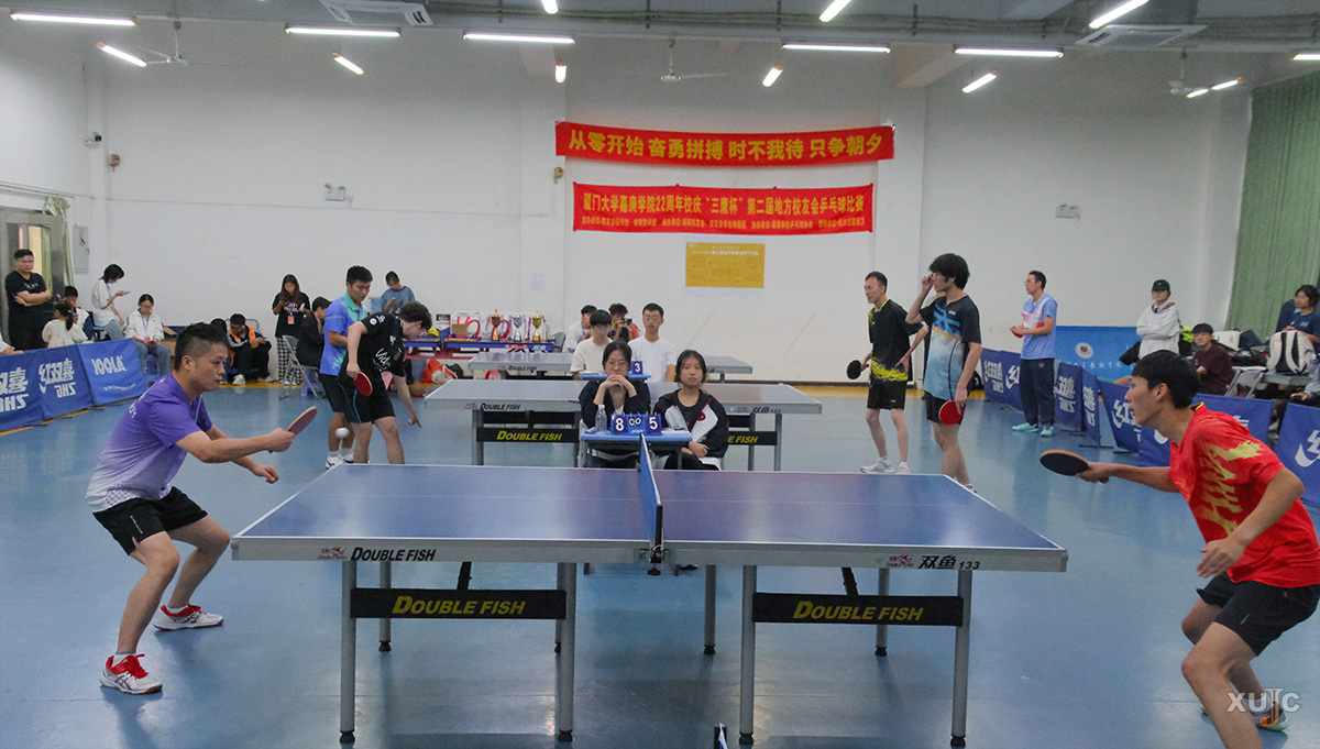 除了主赛程外,现场还举办了邀请赛与挑战赛。我校体育教学部乒乓球教师赵俊安和卢睿来到赛场与校友们进行切磋,精彩的对战在增加观赏性的同时,也添了一份独“嘉”温情。