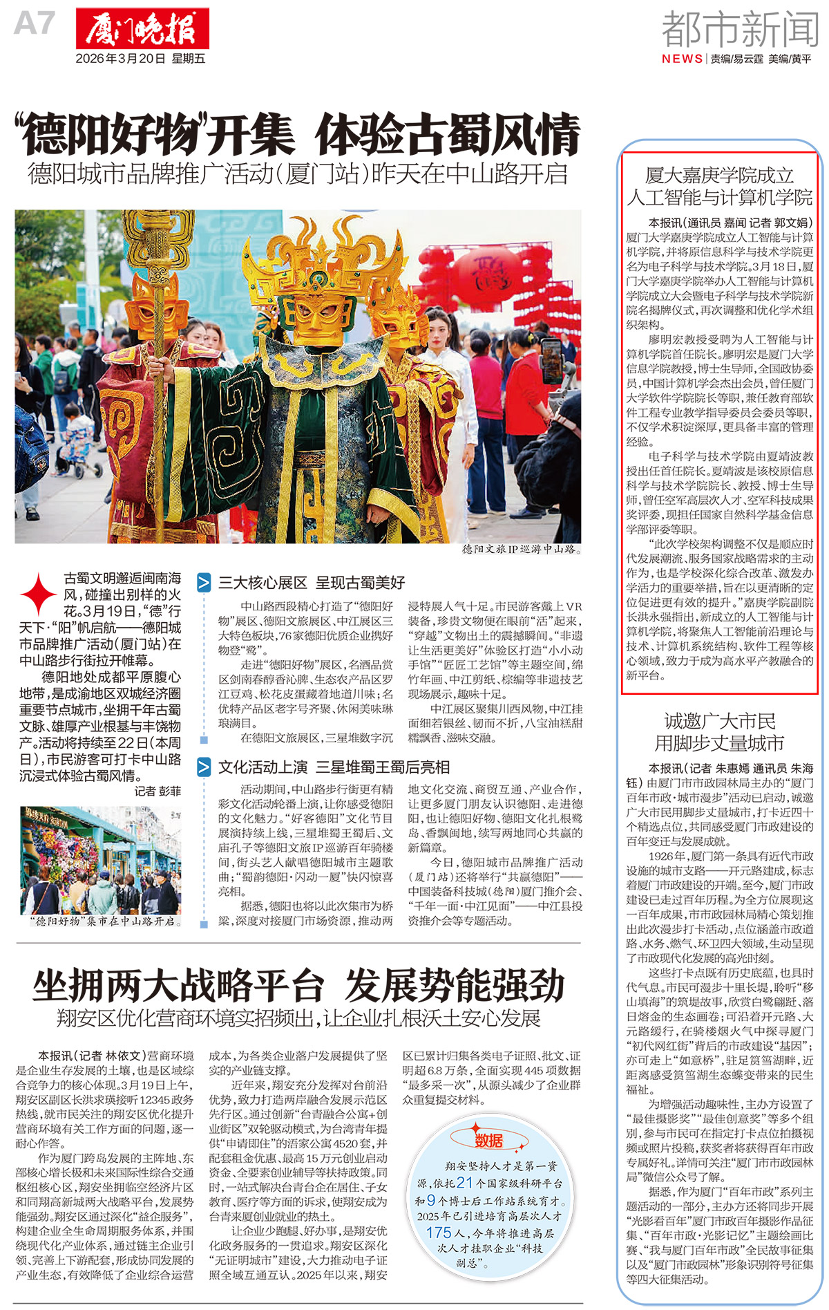 “此次学校架构调整不仅是顺应时代发展潮流、服务国家战略需求的主动作为,也是学校深化综合改革、激发办学活力的重要举措,旨在以更清晰的定位促进更有效的提升。”嘉庚学院副院长洪永强指出,新成立的人工智能与计算机学院,将聚焦人工智能前沿理论与技术、计算机系统结构、软件工程等核心领域,致力于成为高水平产教融合的新平台。