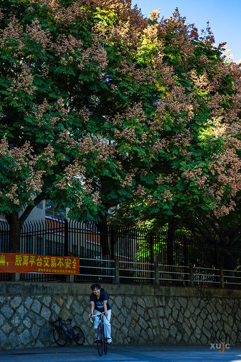 栾树温柔地为学子遮挡住透着凉意的风