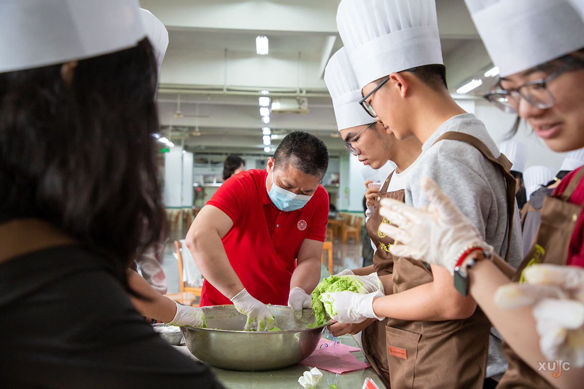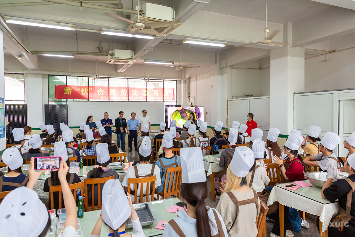 现场,厦门大学后勤集团饮食服务中心面点师手把手教学,从食材配比、揉面、醒发到包馅、蒸煮,步骤细致、示范到位。同学们分组协作,揉皮、称馅、塑形……现场氛围温馨热烈,大家在实践中学习技能、增进情谊,收获劳动成果与成就感。