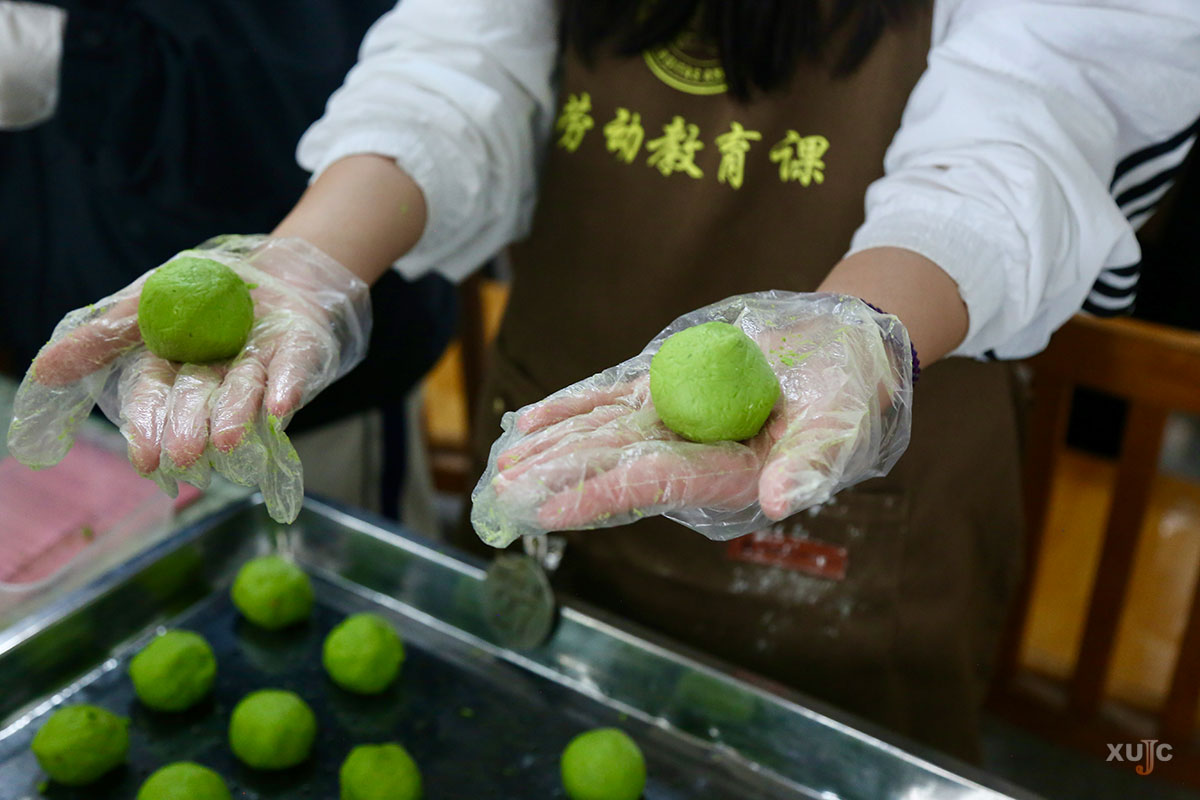 青团是清明时令美食,清香软糯,承载着缅怀先人、期盼团圆的美好情怀。本次薪“伙”食课既是劳动实践,也是传统文化的沉浸式传承。同学们在青团制作中掌握烹饪技巧,在实践中体会劳动乐趣,感悟清明文化与美食渊源。