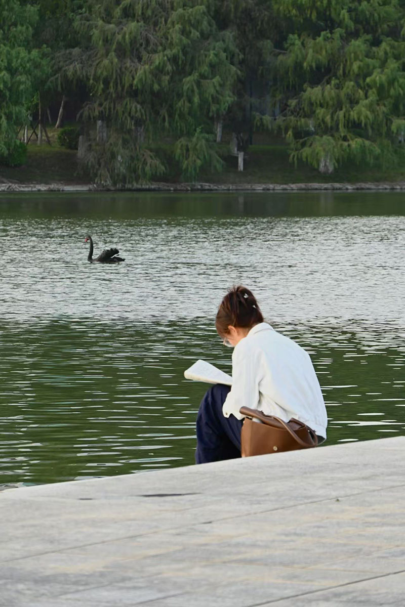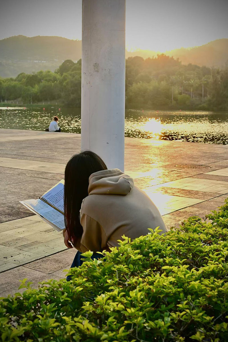 斜阳只给能量,绝不打扰读书人。摄影:陈佳盈