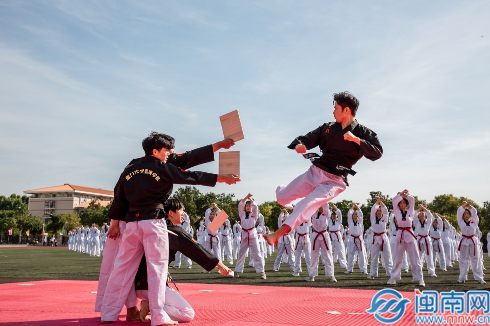 闽南网11月3日讯(通讯员 嘉闻 闽南网记者 柯嘉进 文)以运动之名,赴青春之约!11月1日上午,在厦门大学嘉庚学院北区田径场,来自14个学院的400名学生代表统一着跆拳道服,在秋光里摆开阵势,以跆拳为语,用4幕篇章诠释武道精神和青春锋芒,以内外兼修的方式拉开该校第九届田径运动会的序幕。
