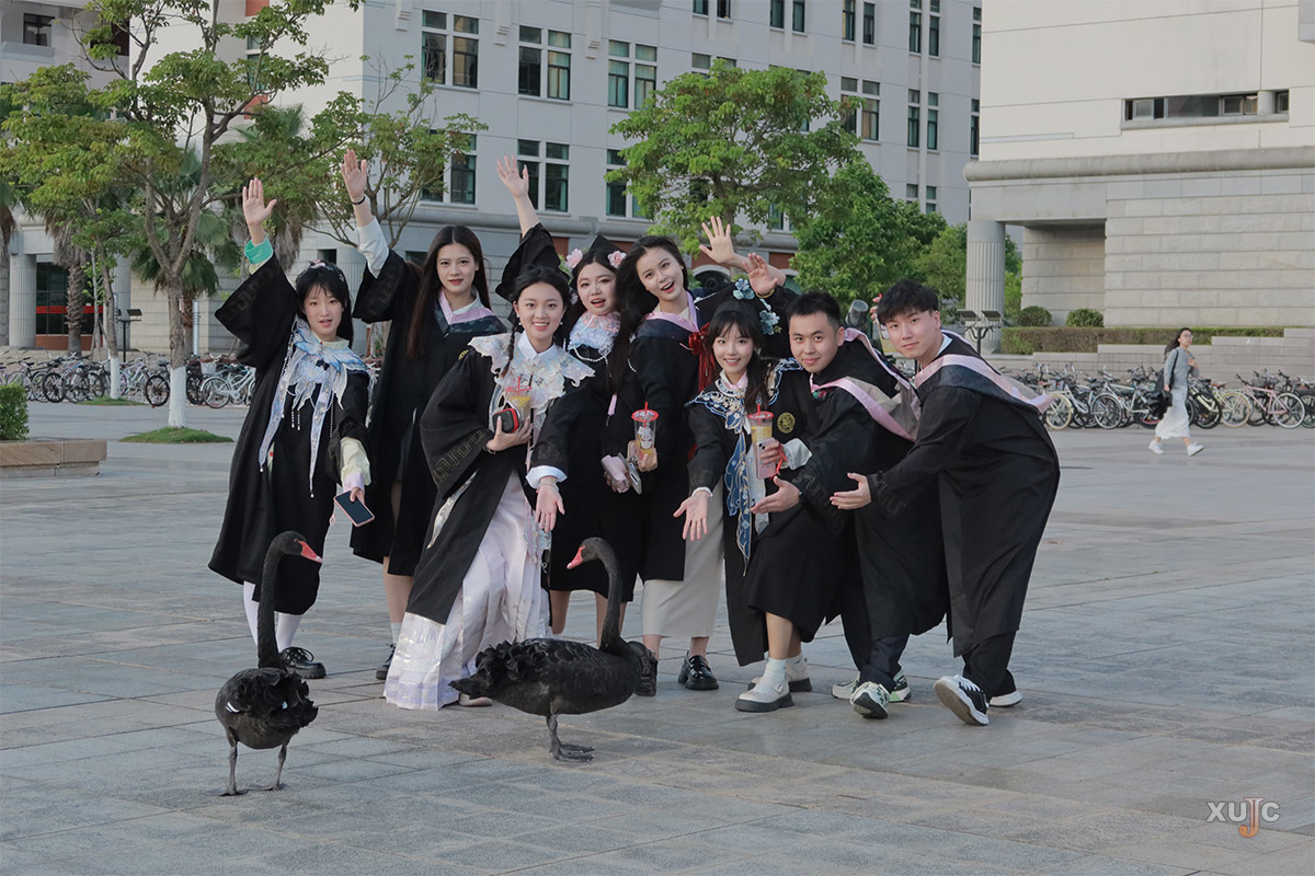 值得一提的是,和黑天鹅拍毕业照的学子们,有的拿到了国外高校的offer,有的考上了研究生,有的找到了心仪的工作,可谓”上岸“遇到了上岸。“我觉得我的‘嘉庚’之旅挺圆满的。”姚子豪感慨地说,“大学四年我不仅学会了如何面对挑战和机遇,还收获了真挚的友谊。”他说,大学期间,他和同学们经常在栖霞湖畔温书,在湖中优雅游弋的黑天鹅们不仅默默陪伴,还提供了很棒的心理按摩,“看着它们,仿佛心里的各种压力总能消散而去。”