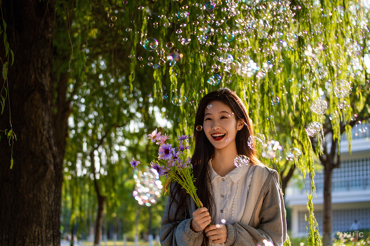 花枝与泡泡轻颤,悬成一片流转的光谱