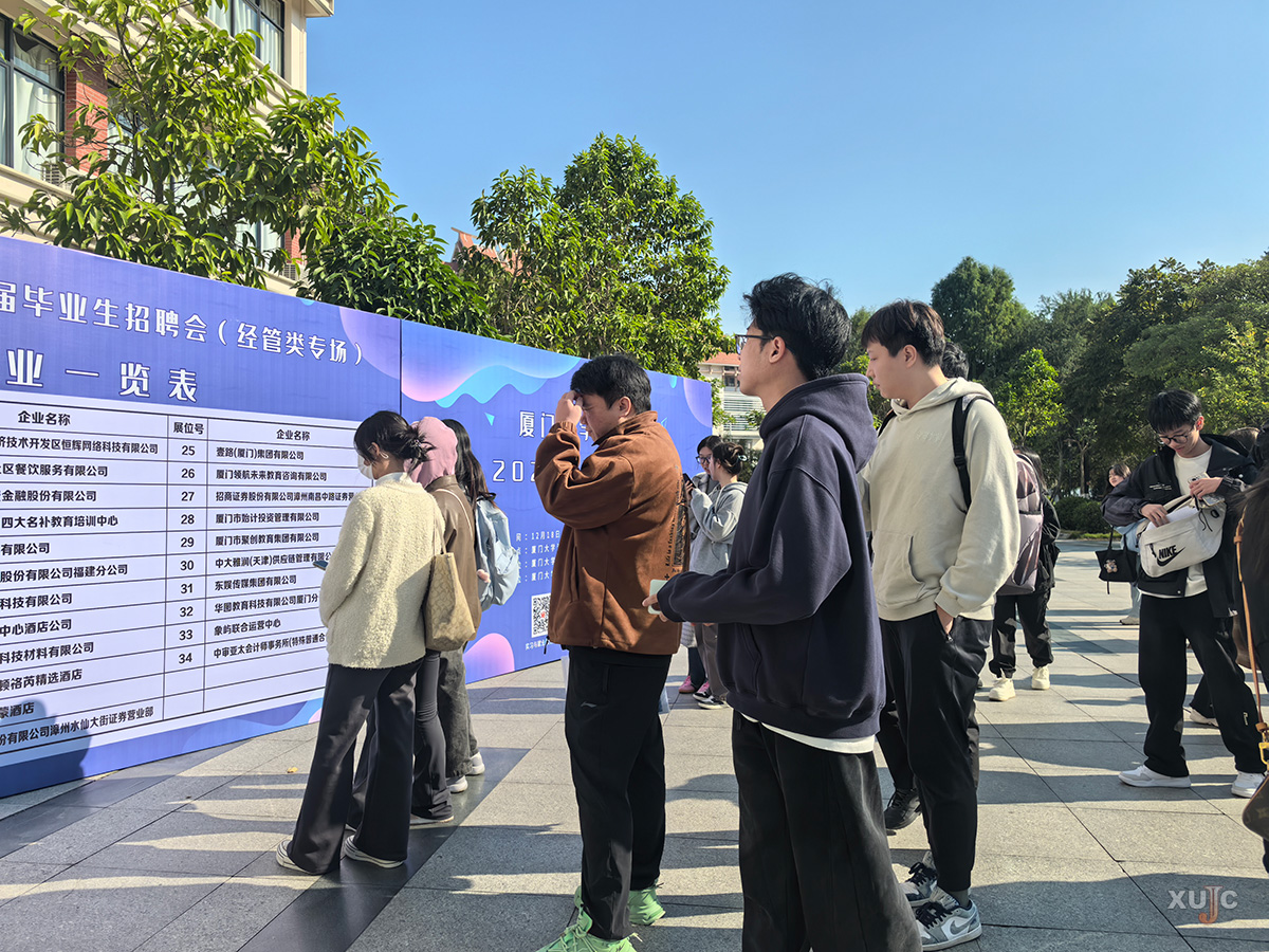 12月18日,厦门大学嘉庚学院2025届毕业生经管类专场招聘会在玉兰广场举行。此次招聘会由实习与就业服务中心指导,国际商务学院、会计与金融学院以及管理学院联合主办。中南万象、立达信、华福证券、新华人寿等34家用人单位前来参会,为毕业生提供了600多个岗位需求,涉及金融证券、企业管理、供应链管理等多个行业。招聘会现场活动持续超过3个小时,吸引了来自全校近千名毕业生参会。