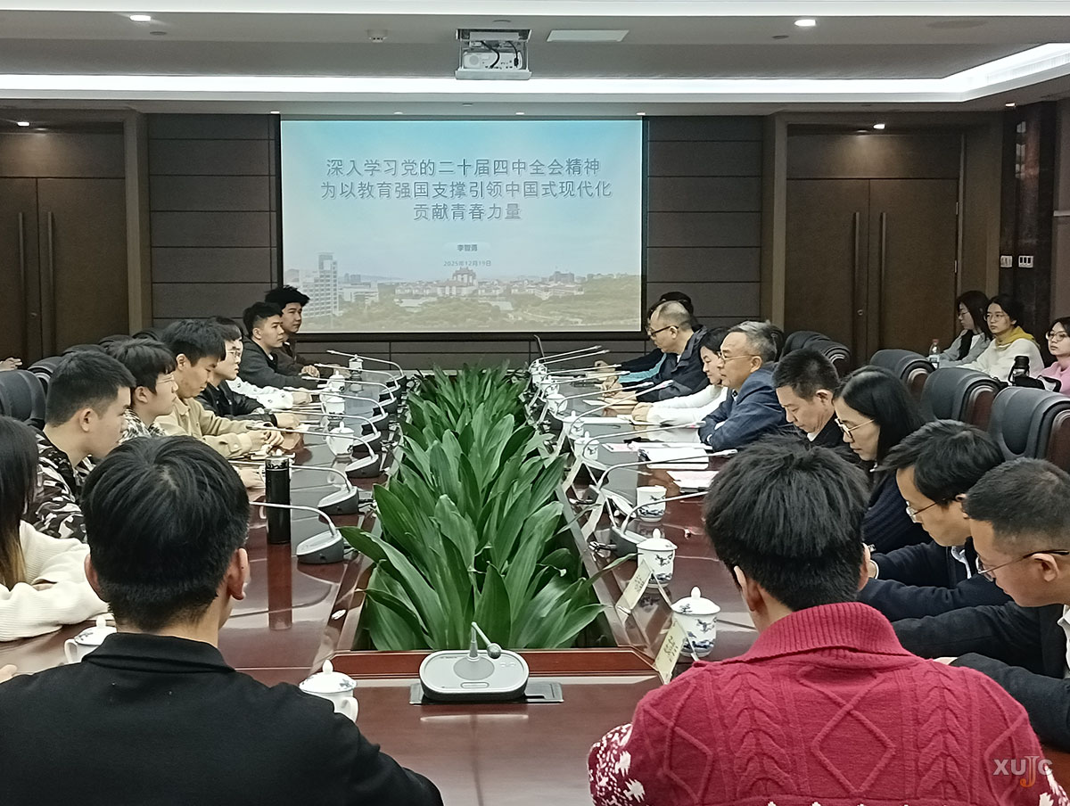 12月19日上午,校党委书记李智勇以“深入学习党的二十届四中全会精神,为以教育强国支撑引领中国式现代化贡献青春力量”为题,在漳州校区主楼群3号楼709会议室为师生讲授思政课。