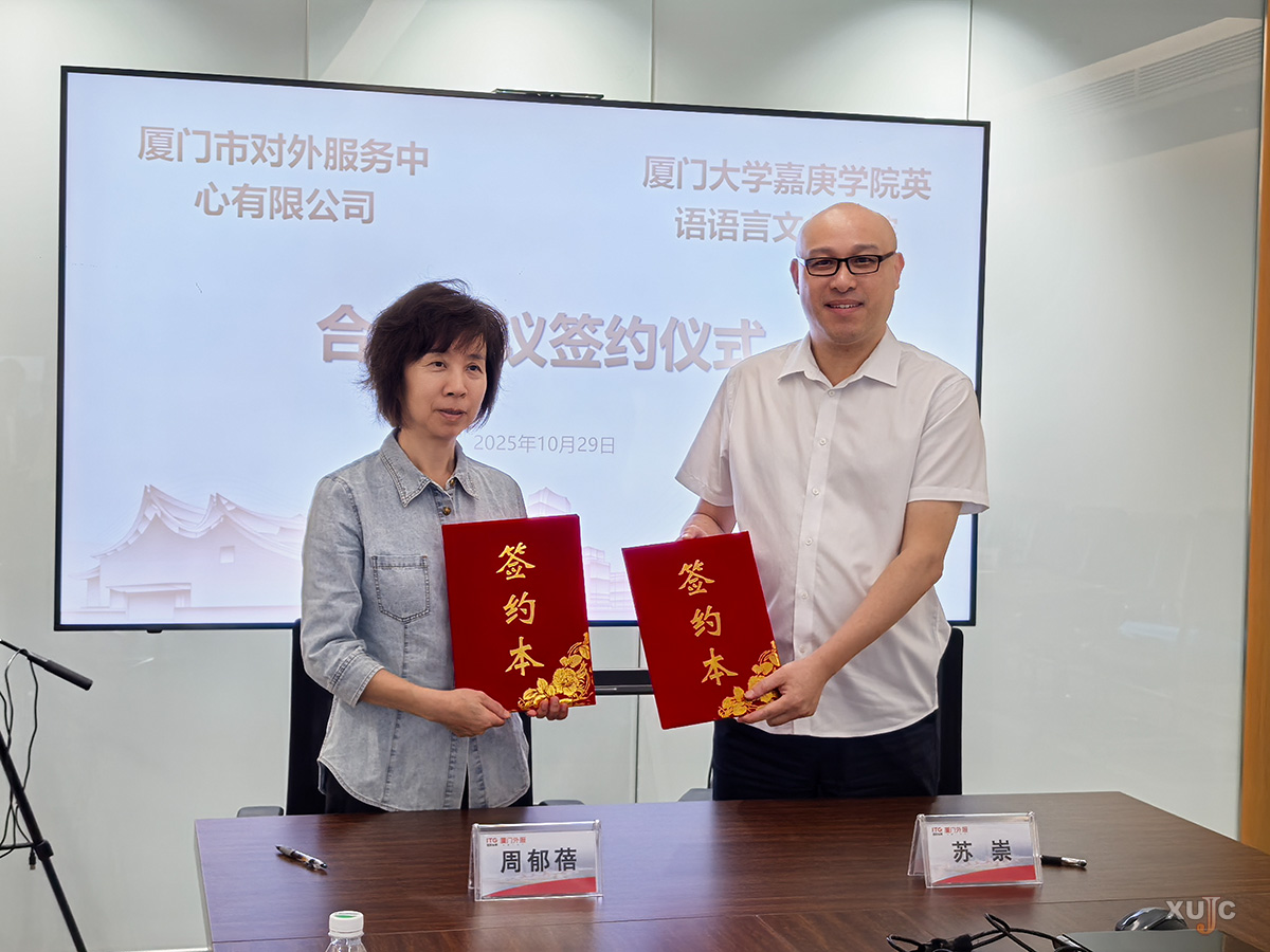 10月29日,我校英语语言文化学院与厦门市对外服务中心有限公司(以下简称“厦门外服”)院企合作签约仪式暨“厦门大学嘉庚学院英语语言文化学院实习实践基地”挂牌仪式,在厦门外服会议室举行。双方以“资源共享、优势互补、互利共赢”为核心发展理念,旨在通过深度协作,为高校学子搭建从课堂到职场的实践与就业桥梁,同时为企业注入优质人才活力,共同推动区域外语人才培养与涉外服务产业高质量发展。
