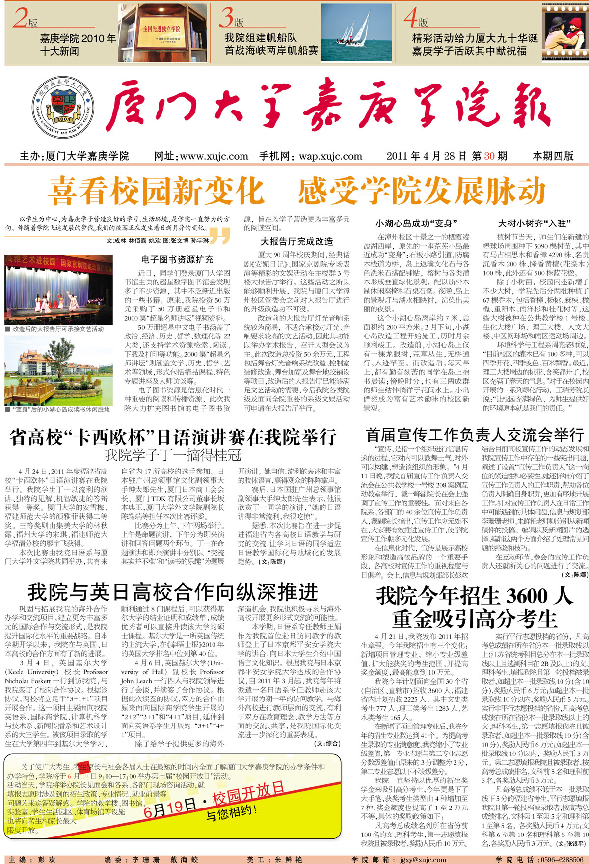 厦门大学嘉庚学院2011年校园开放日活动预告