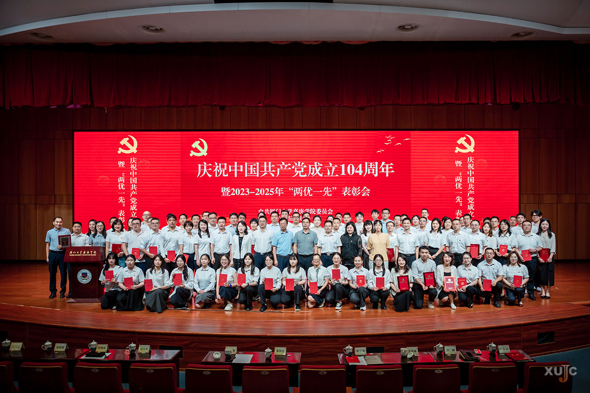 7月1日中午,我校在主楼群3号楼大报告厅举办庆祝中国共产党成立104周年暨“两优一先”表彰会。学校党政领导班子成员、党委委员、纪委委员、部门负责人、党总支书记、党支部书记、师生党员代表等参加大会。