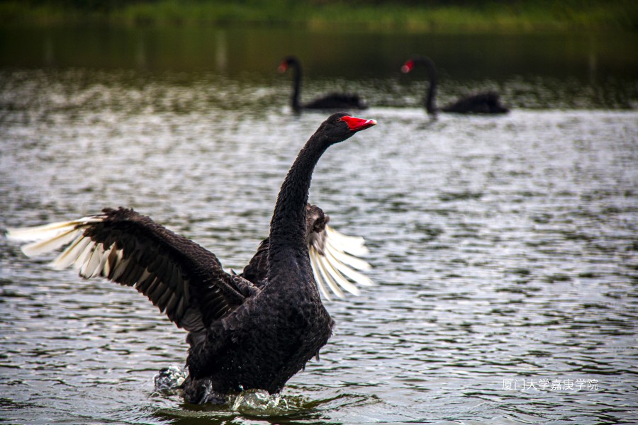 今年,厦门大学嘉庚学院第20周年校庆,迎来了几只美丽的黑天鹅。在生机勃勃的校园里,舞动翅膀的黑天鹅显得生动、活泼。